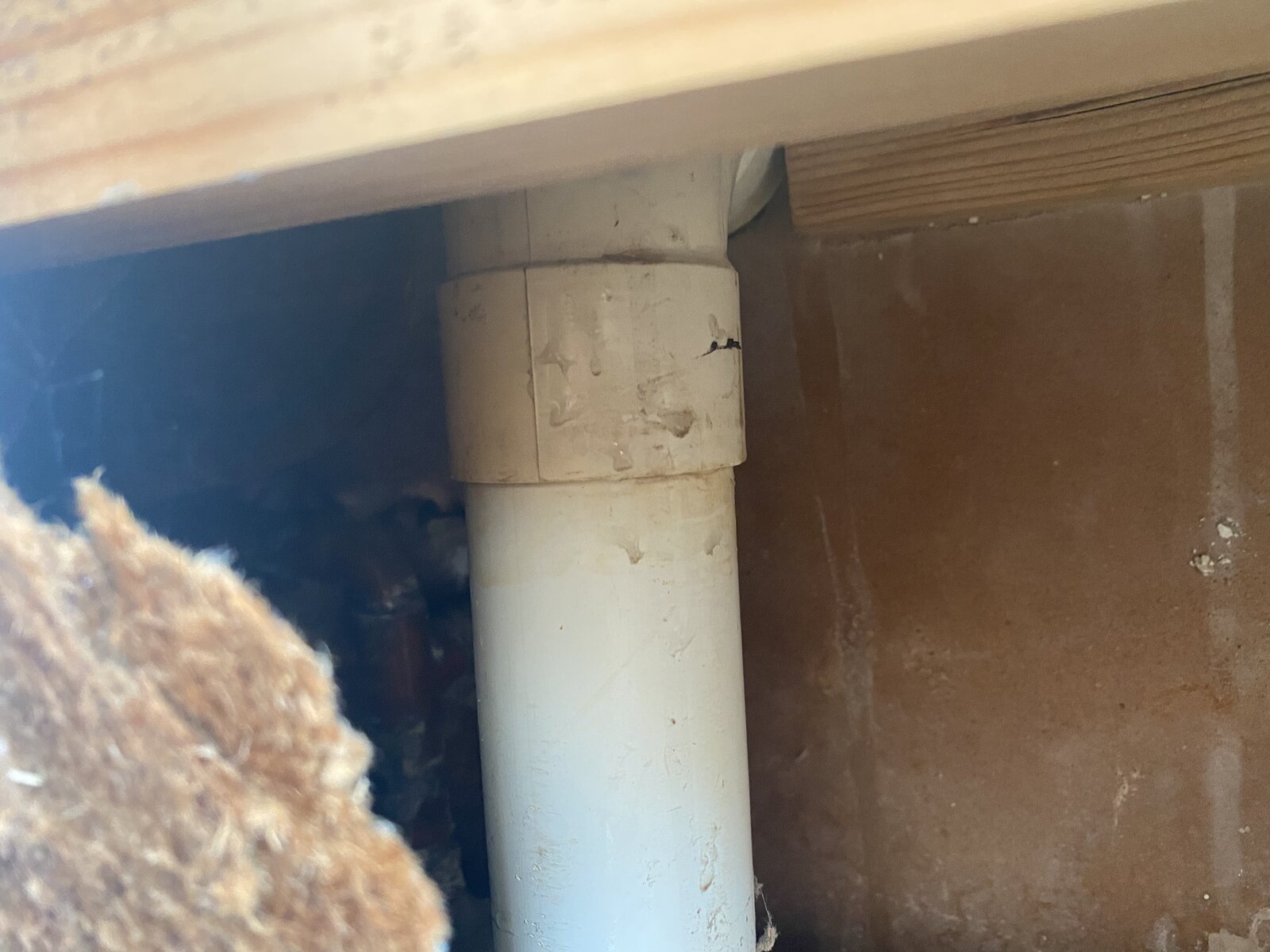 I have noticed a leak in the bathroom recently. The issue is the joint is glued what is the best fix for this? I have attached some pictures.