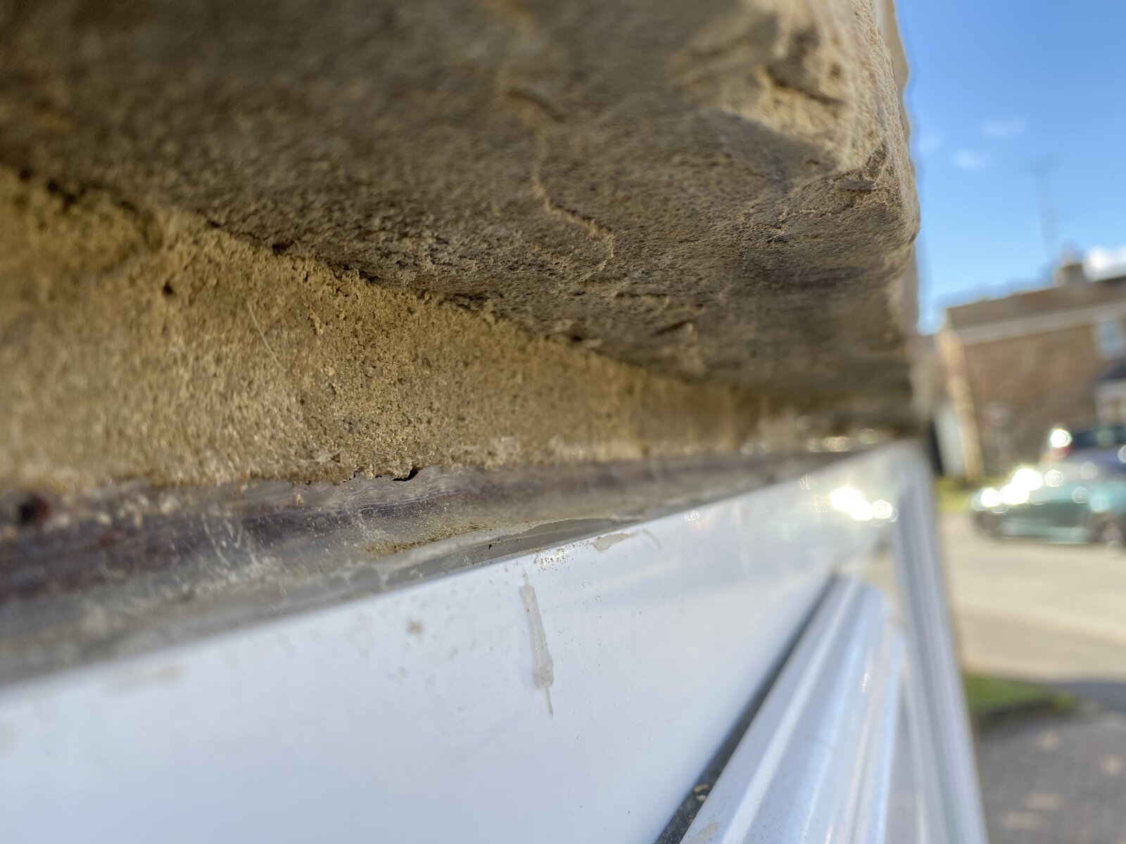 Hi, could anyone advise on the best way to stop this window leaking at the top please? It’s not been fitted very well and so water seems to be running down the outside wall and then it gathers on top of the frame itself.