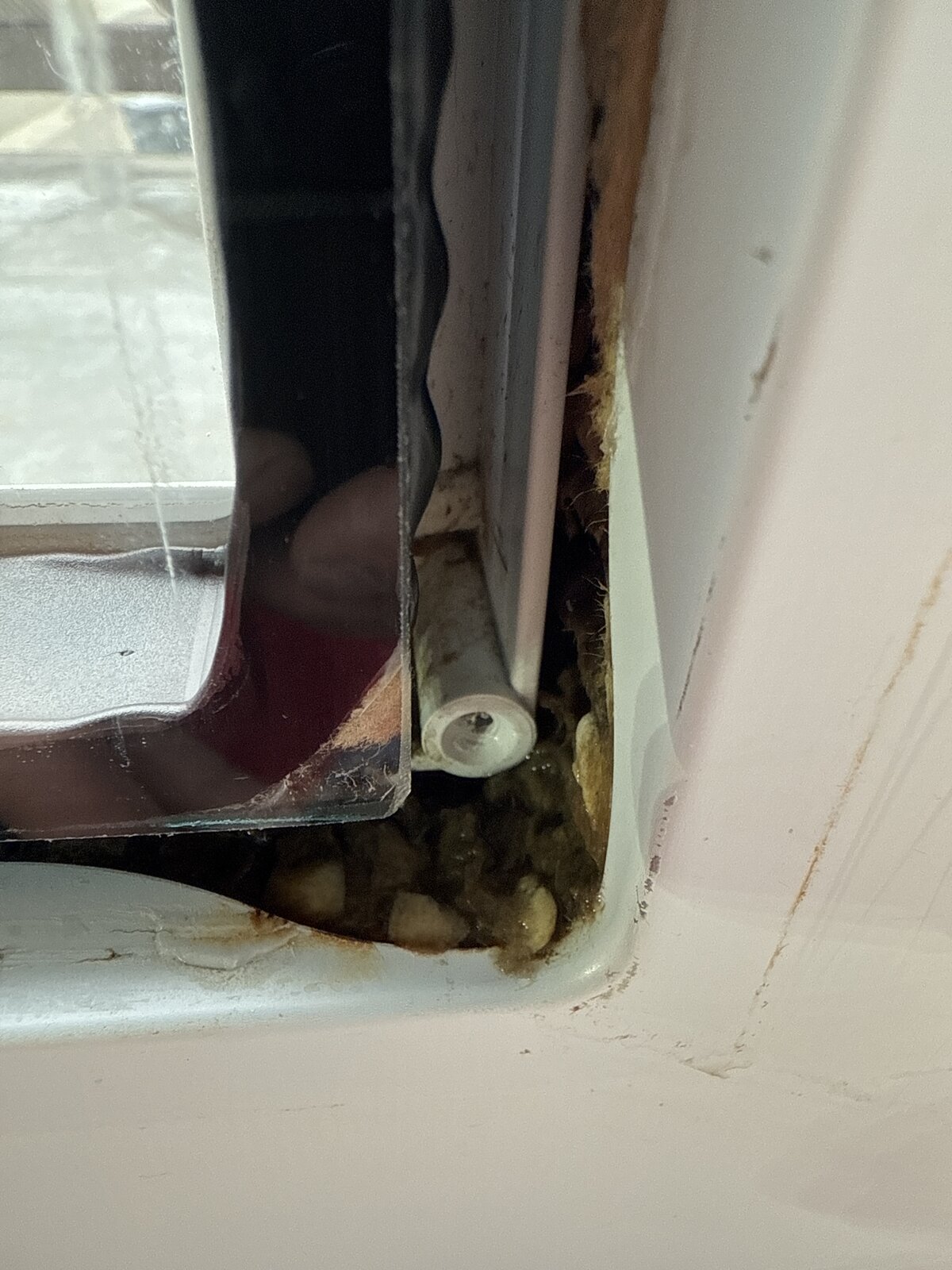 Our atrium door (on upper deck) appears to be somehow/somewhere leaking to floor below. Water is pooling within the wood frame surrounding a large 3-window casement window. Water is not directly in the actual window frame, but the frame beyond that which is directly over the window sill, if this is making any sense. Help. I so hope I don't need to remove the door and upper siding.