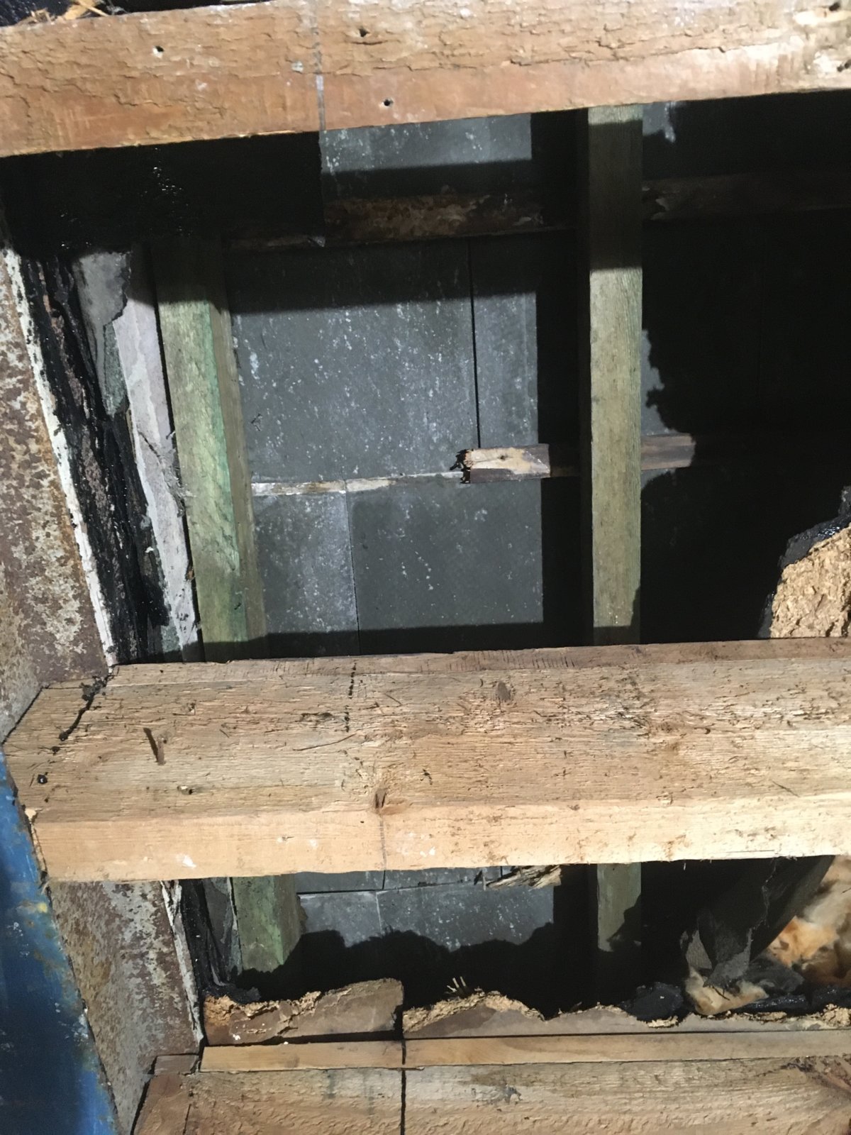 Since then I have been stripping out the kitchen and have gained access to the underside of the leaky roof,