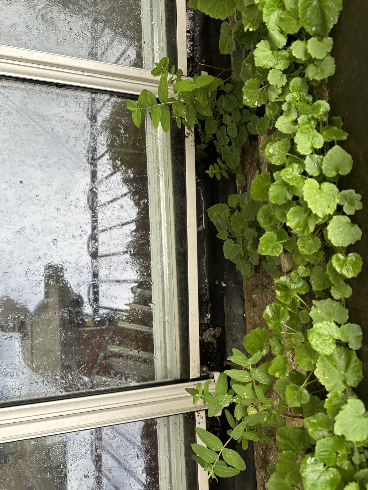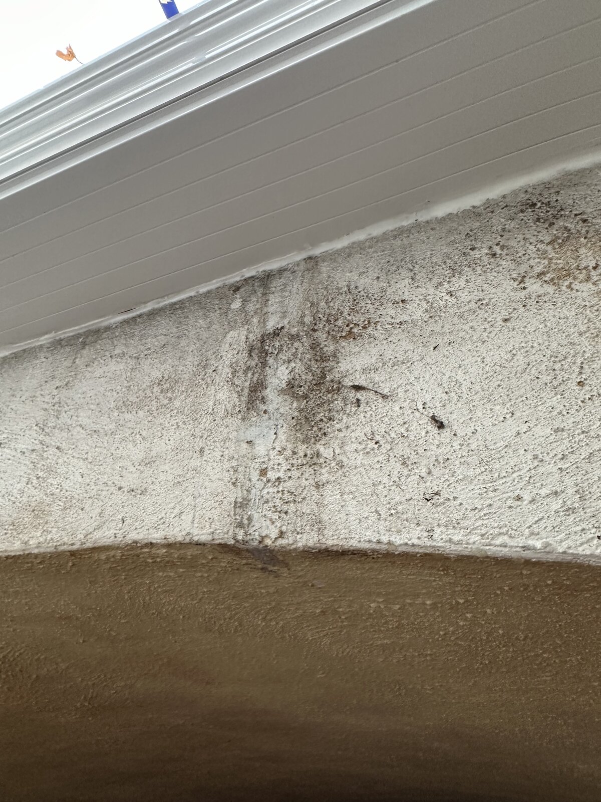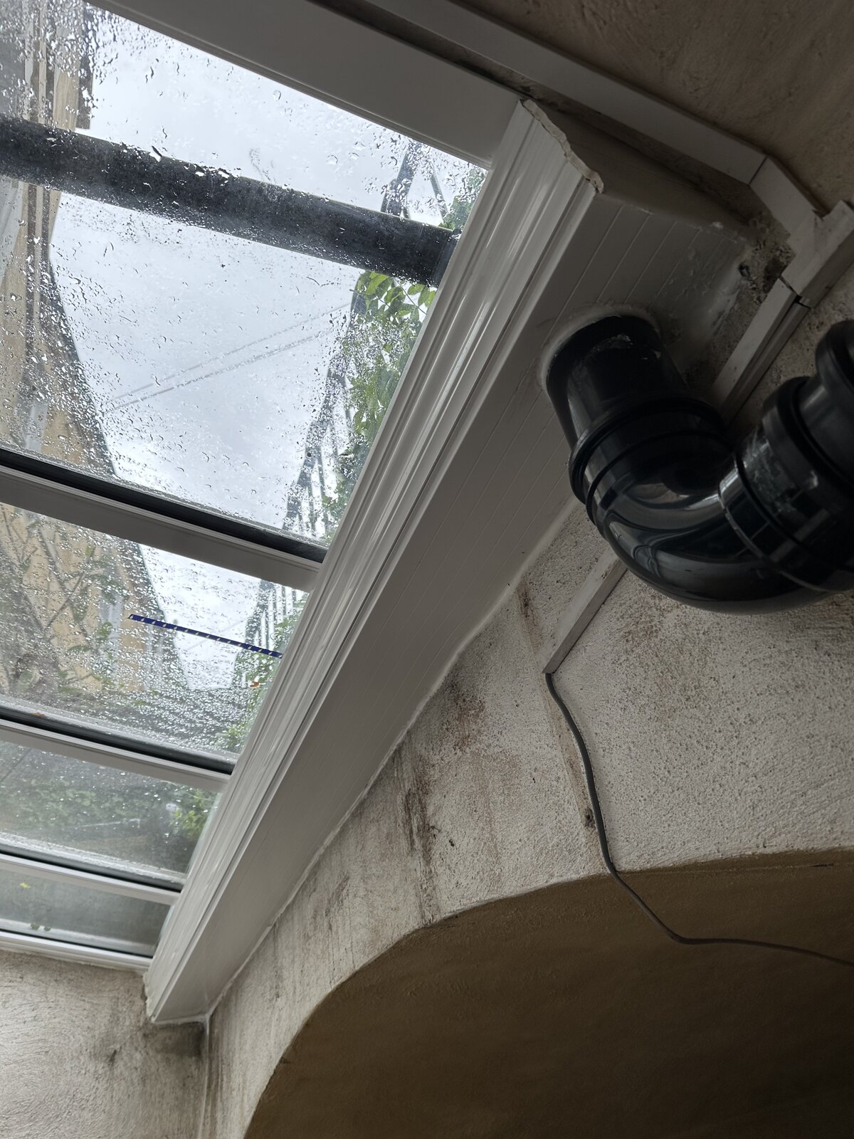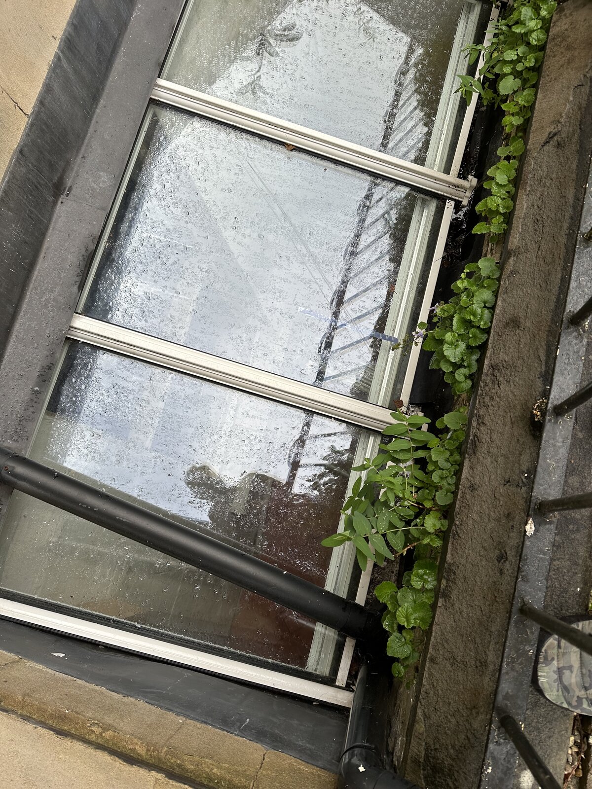 I've got an few big leaky spots on my lean to window, which seem like they've been there a while there's some salt build up and the vault area is tanked but not the best vented. In the centre where there's some loose flashing and in the far corner under the roof downpipe.