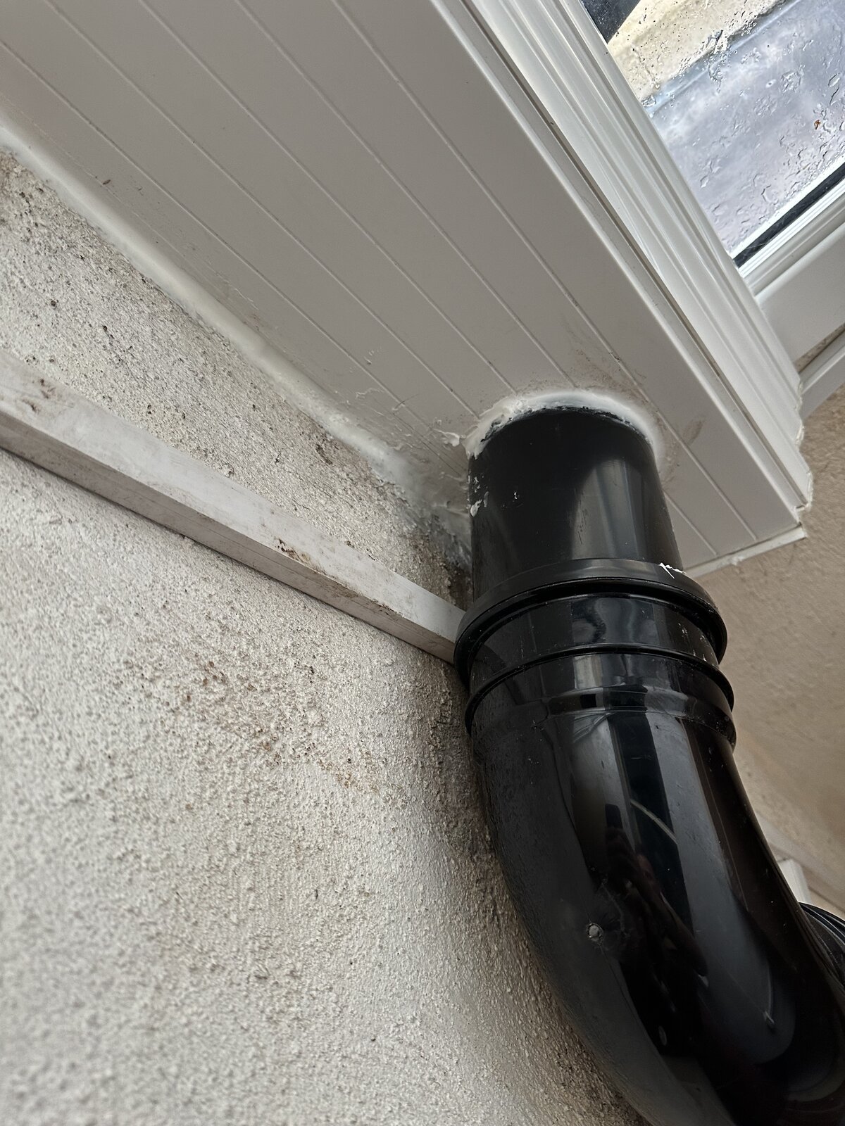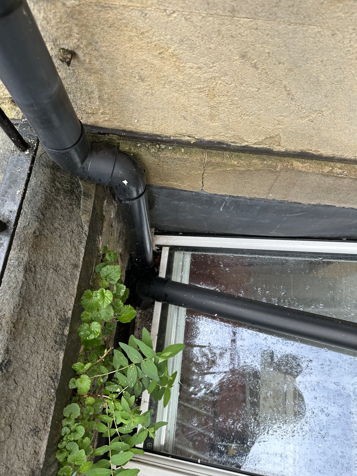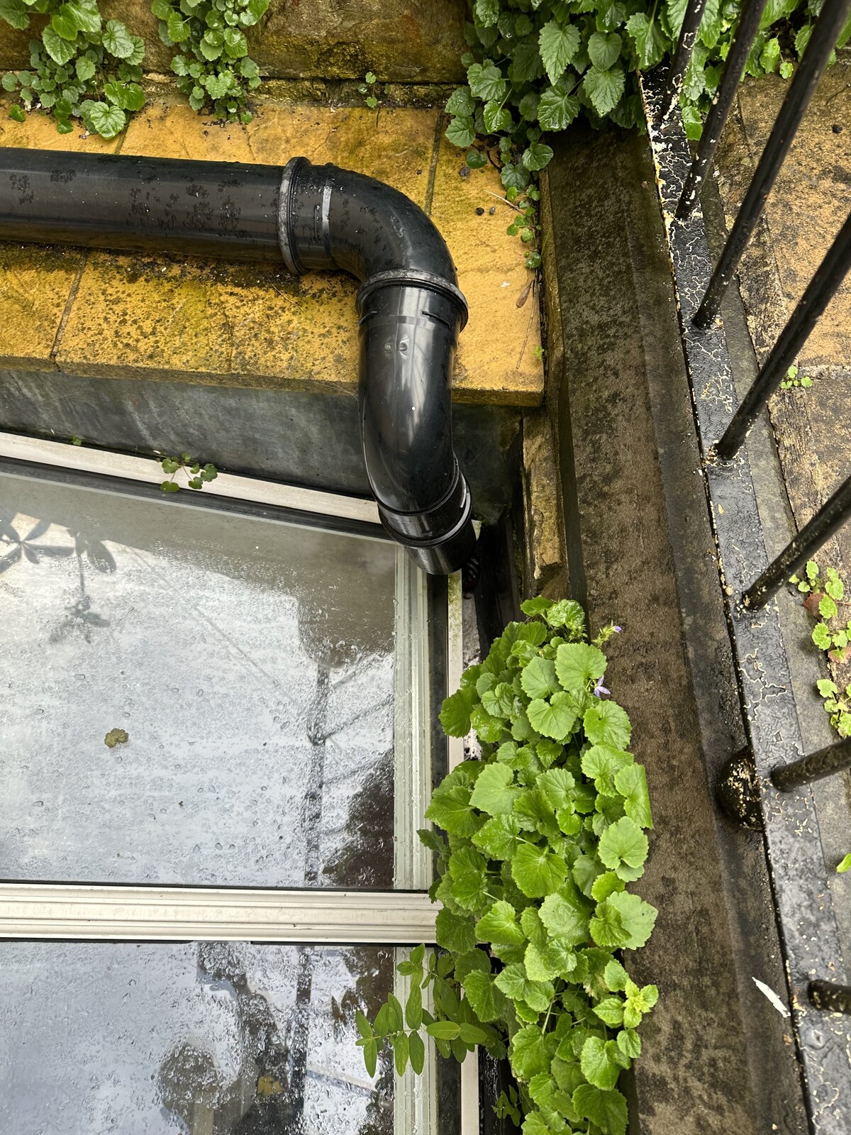 • Change the downpipe so it meets the main drain pipe so it doesn't discharge into the gutter and goes straight down and out.