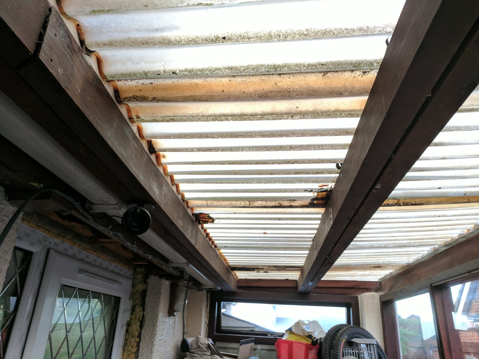 I need to look at my rear porch roof before Winter set in, as the old corrugated roof is leaking like a sieve and is more fibreglass patches than PVC by the looks of it!