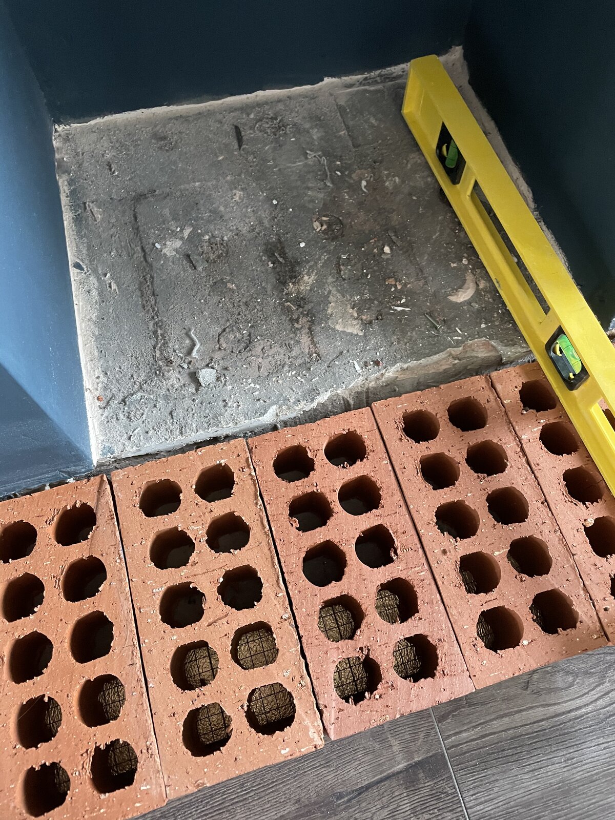 I am looking at using bricks as the base for a new hearth which I intend to tile on to with large floor tiles. As the picture shows, the level of the opening is slightly lower (approx 1cm) to the height of the bricks (will be >1cm once brick mortar applied to secure them to concrete floor). I was wondering whether i need to use SLC to level the opening to the same level as the bricks or whether I could get away with just using a bit more tile adhesive? Also, there is a gap between the bricks and the lip of the opening. Will this need filling first? Or could I just tile over the gap once level? This is purely a decorative hearth - not for a burner/fire. Thanks in advance