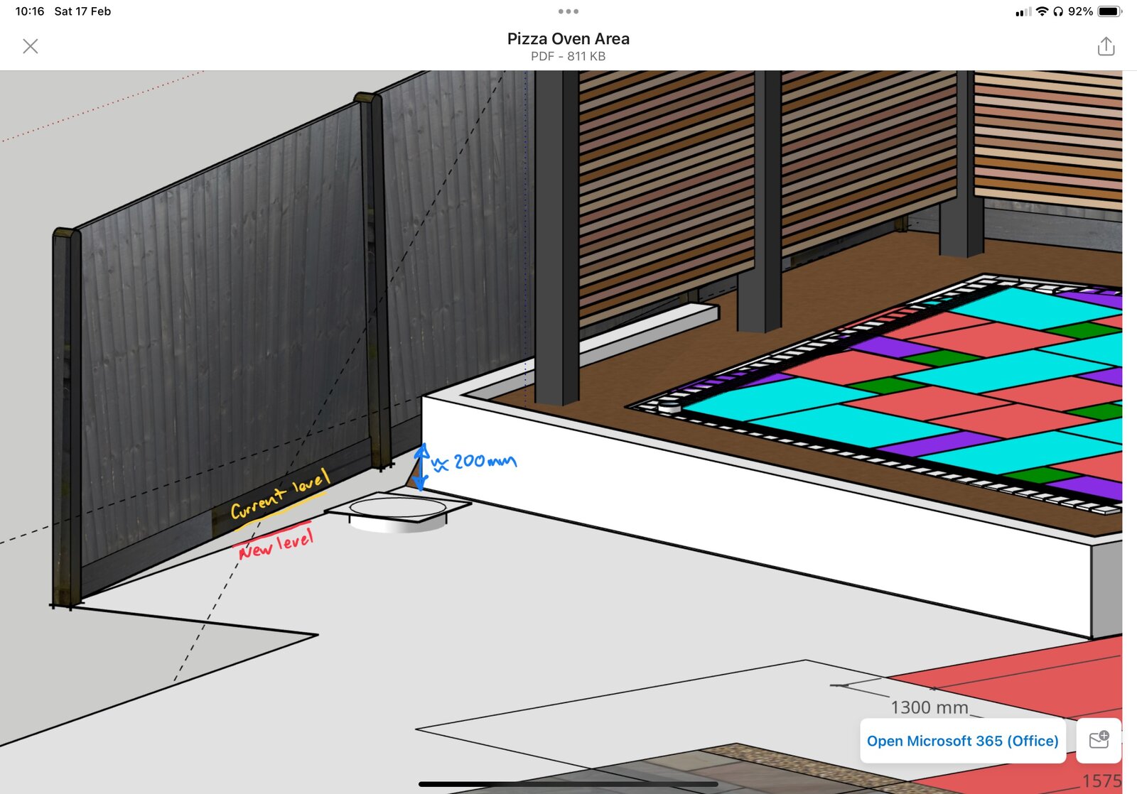 Any ideas of a good way of doing this? I’m planning on building a pizza oven (see image) which will have rendered blocks so that will provide some restraint. Maybe using sleepers would be an idea? That would also provide and raised bed around the fence.