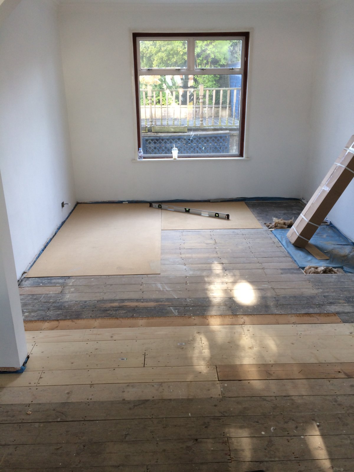 I ended up levelling my floor joists by tacking on shim cut from scrap wood. then putting the timber floorboards back in. This gave me a level floor to install over floor underfloor heating boards.