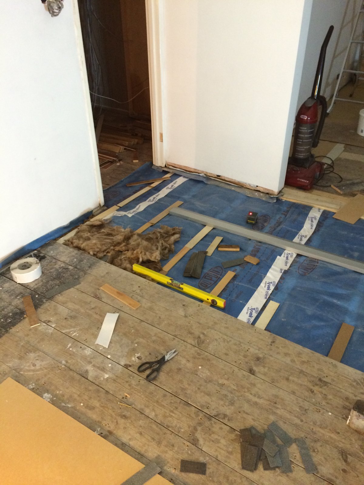 My 1930s house had unlevel floors. They were low at the sides of the room and high in the middle.