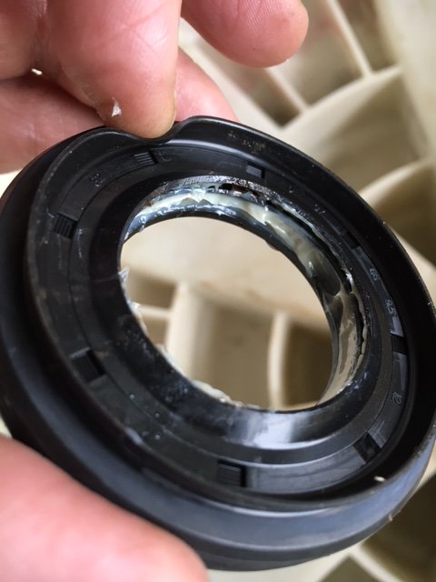 OK, now building it up. The bearing seal has a spring coiled round one side, and on the other face there is a sort of flexible lip round the outer edge and another on the inner edge. Can anyone help with which side faces the bearing?IMG_3294.JPG IMG_3293.JPG