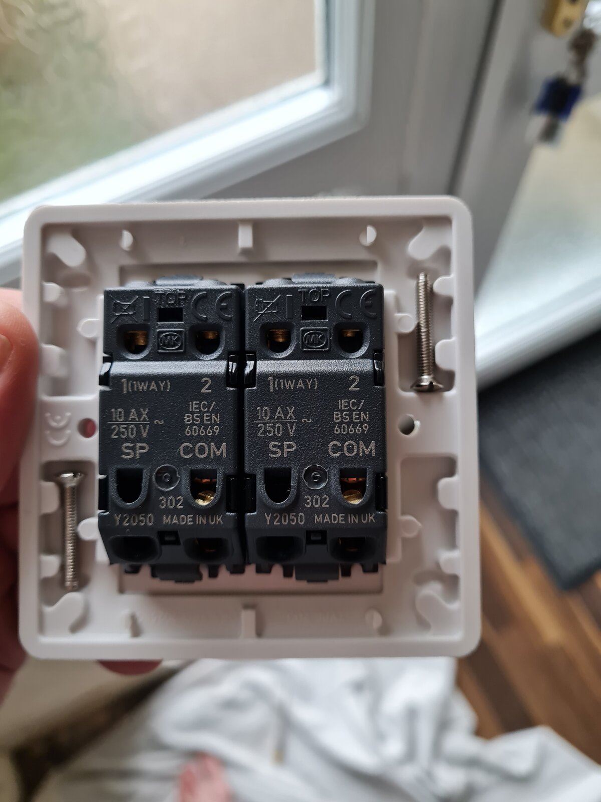 It's a double 2 way switch, so one controls a light downstairs and the other controls one upstairs. The upstairs light has its own single switch upstairs aswell