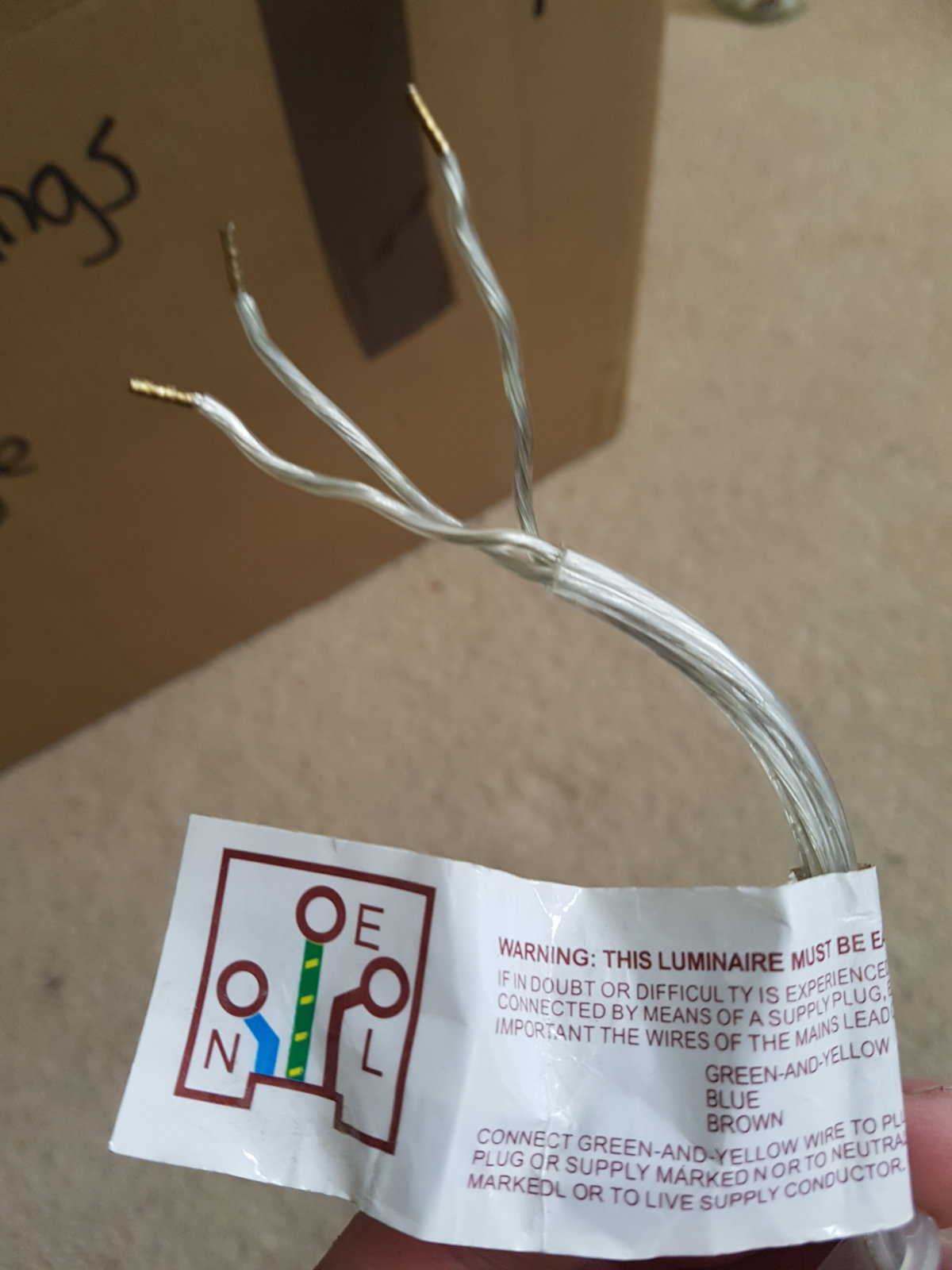I have just moved house and opened the box marked light fittings... So in my haste not to forget the bedroom light fitting I omitted to check the wiring before it was removed. When I have come to fit in to our new house, I see that the three wires coming from the fitting are all clear sheathed. I have looked high and low to no avail - there is nothing to identify any of them.