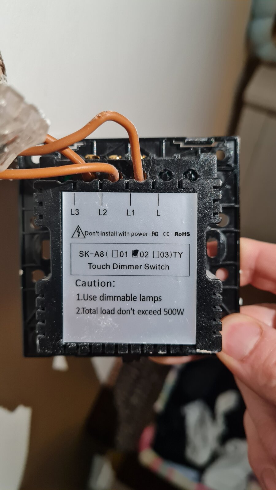 I have a two gang dimmer switch I'd like to replace it with (also pictured), but I don't have the manual for either switch. The currently connected switch seems to be connected to L1, L2 and L3.