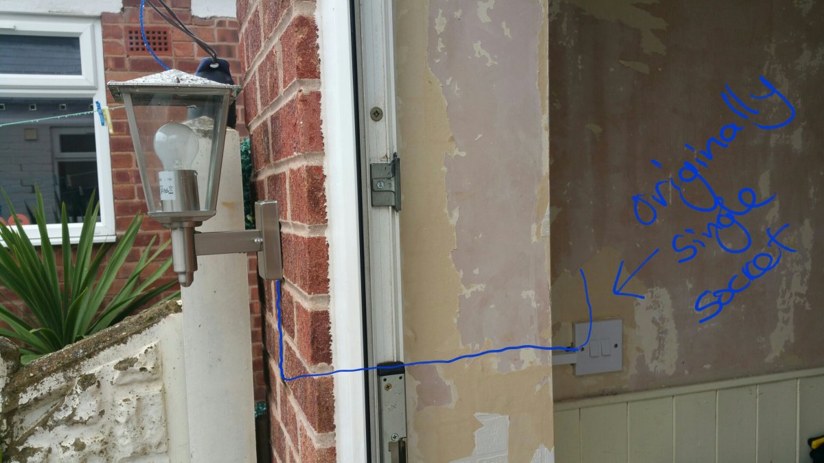 Below is a picture of the outside light and the wiring i have installed. The new wire gas the usual blue, brown and earth.