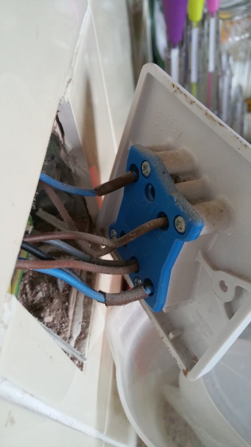 Below is also a picture of the other double socket which power both of the sets of lights in the kitchen. This one does have blue wires in it.View attachment 104088 View attachment 104089
