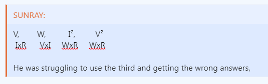 It's obvious that the last two can't both be right - otherwise I² would equal V².