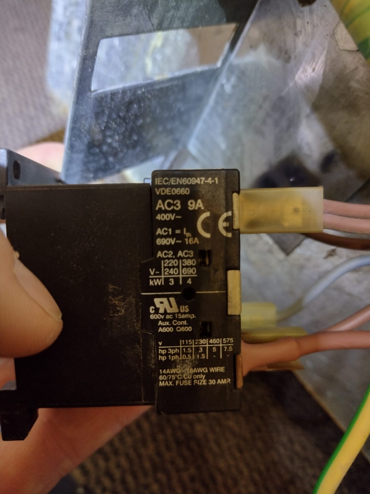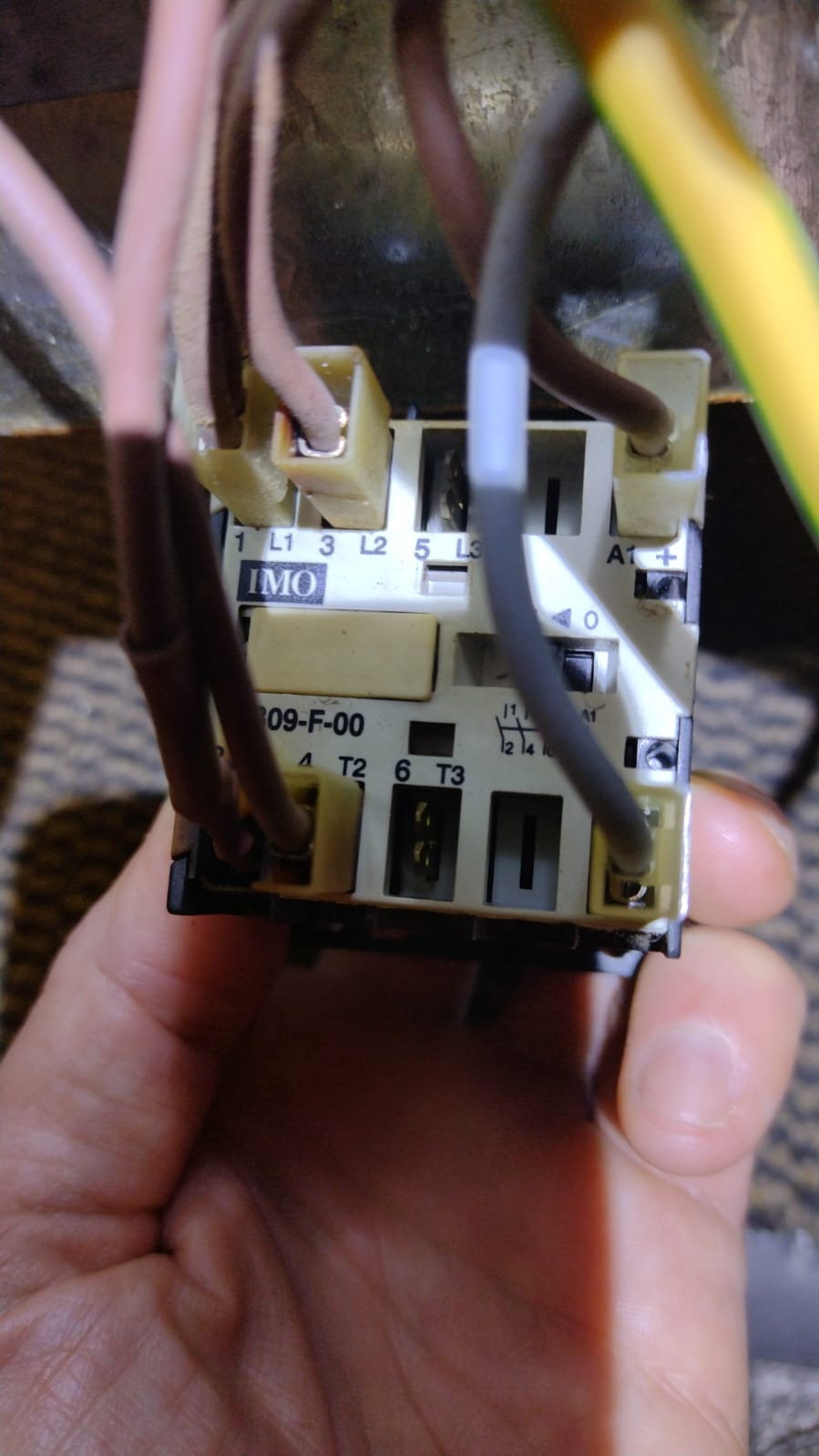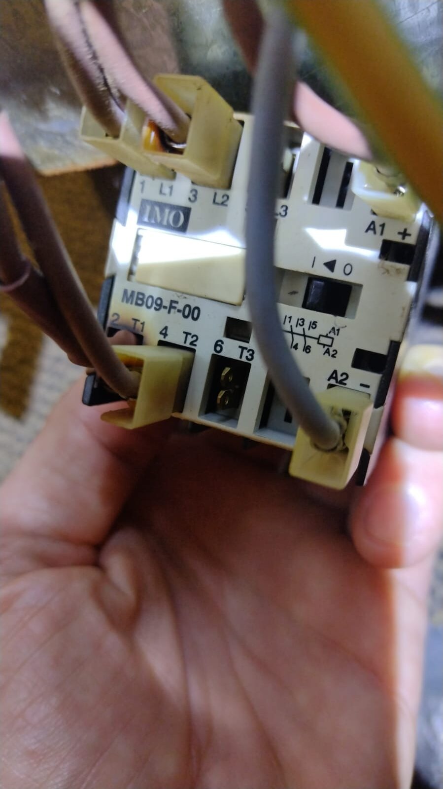 Two weeks ago the cooker made a bang and tripped the consumer unit, upon inspection I could see that the contactor appeared burnt-out and a wire on a heating element was loose and burnt also, with signs of arcing on the connector. The contactor fitted was a IMO MB09-F-00, see attachments 3,4 and 5.