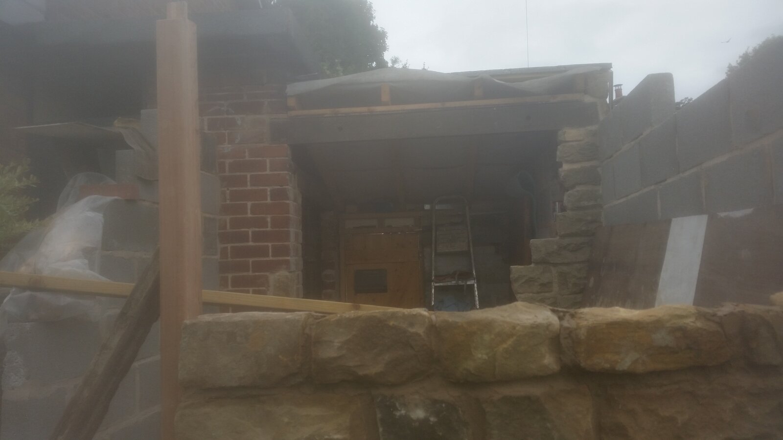 I added a pic for ref...new door frame on left and new timers 4x2 to join to other side down to stone wall. Not a big roof so not really big weight.