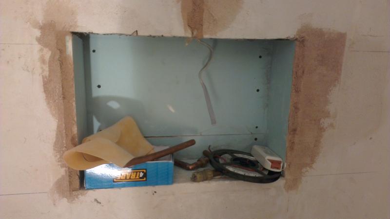 We're having a new bathroom installed including a recessed soap/shampoo box which has been cut into the first skin of an existing inner block wall. It is 46cm wide.