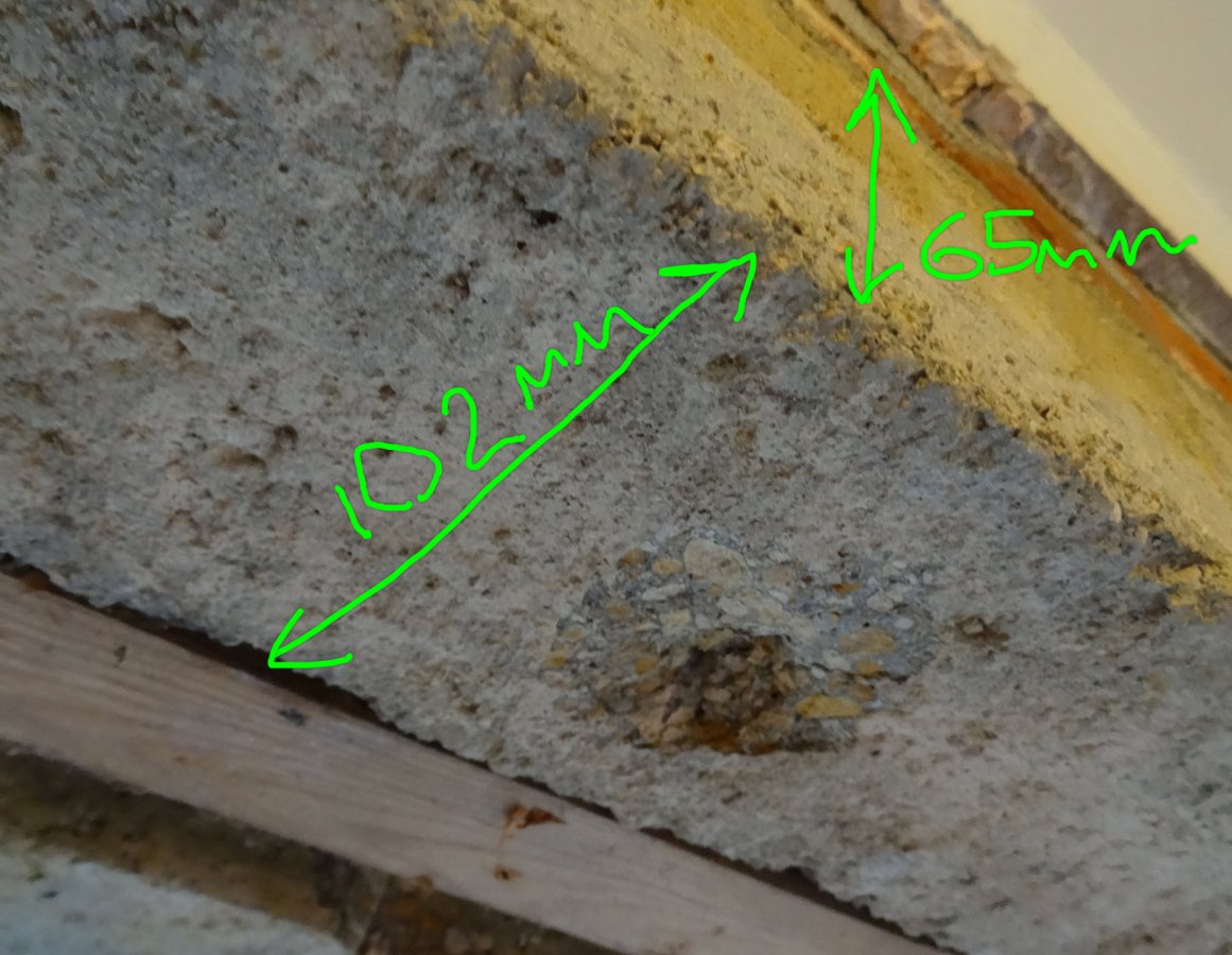 so these 65x102mm lintels are actually helping to hold a brick wall (was original external wall of the building), the wall in question is around 2m high on one side and something like 4m at the other side (~3m tall wall on average - second sketch)