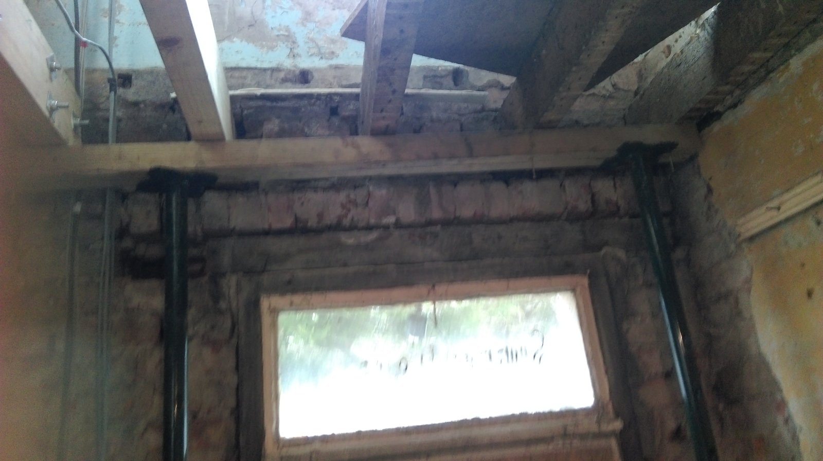 House of Pain- timber lintel above the front door. Looked a bit poor but not disastrous- then I found the timber above the soldier course (above the lintel) which is acting as a sort of sole plate for the first floor joists was totally rotten, as were a couple of the joist tails