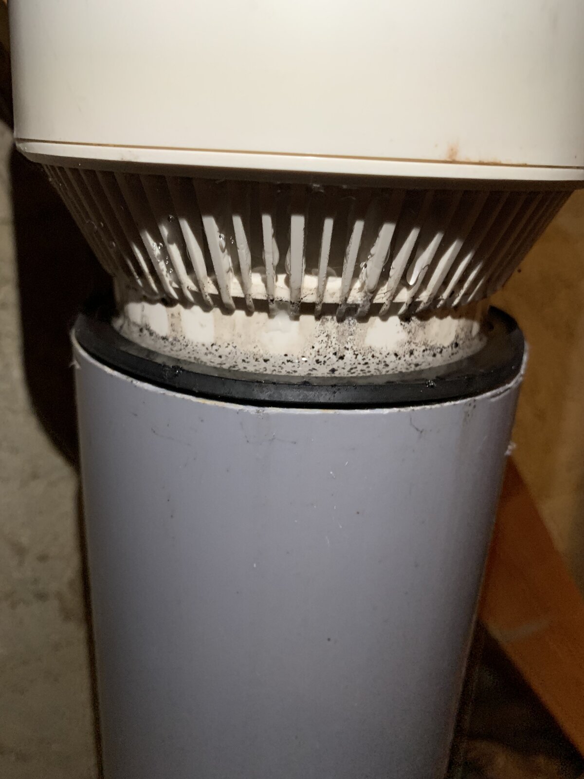 There is a ring of water and staining all over the valve, I’m guessing condensation? Got someone to flush the loo whilst I was next to it and cant hear the valve do anything. It’s about 16 years old. Also has this polystyrene cover which has been cut as the stack is tight to the wood and mould growing.