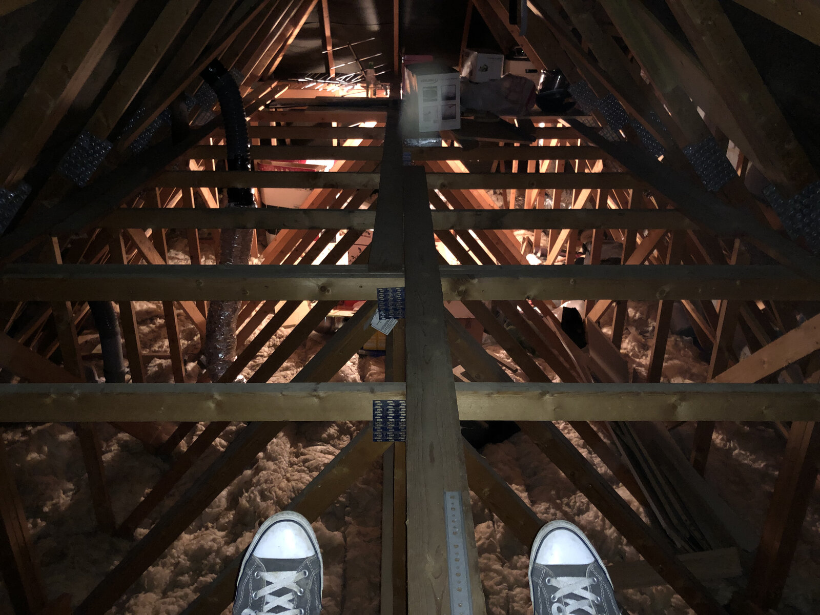 Is it possible to put loft boards on the area shown in the picture? Won’t have anything heavy on it mostly boxed of baby clothes and the odd box of light electricals. There’s currently 2 thin strips of wood running the length of the centre, it’s very thin and I’m guessing it was used to space out the prebuilt roof sections when the house was built (in 2005) would it be ok to remove these so can board right the way across? Thanks in advance for any advice.