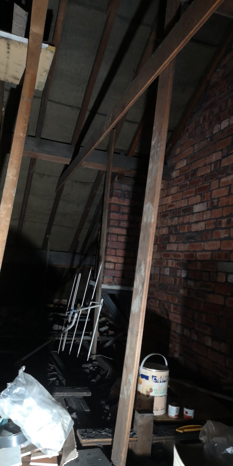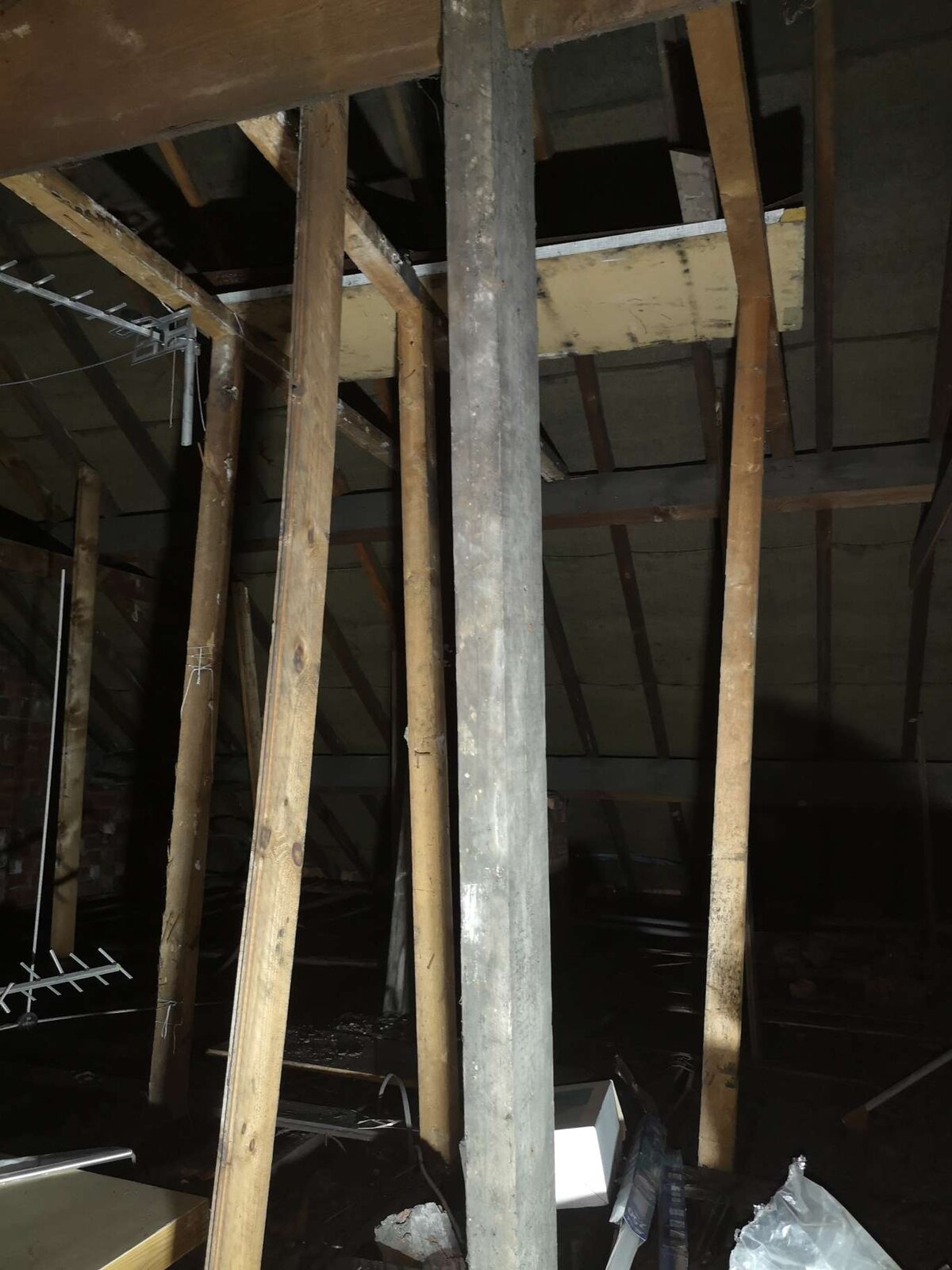 I've got a load of 50x75 CLS for cross joists and roof board packs, but before starting clearing up I need to know about these verticals. From the pic you will see what looks like a piece of old worktop sat on top of part of the frame, not sure why that is there either, been in the house about 9 months and not properly looked into boarding the loft until recently.