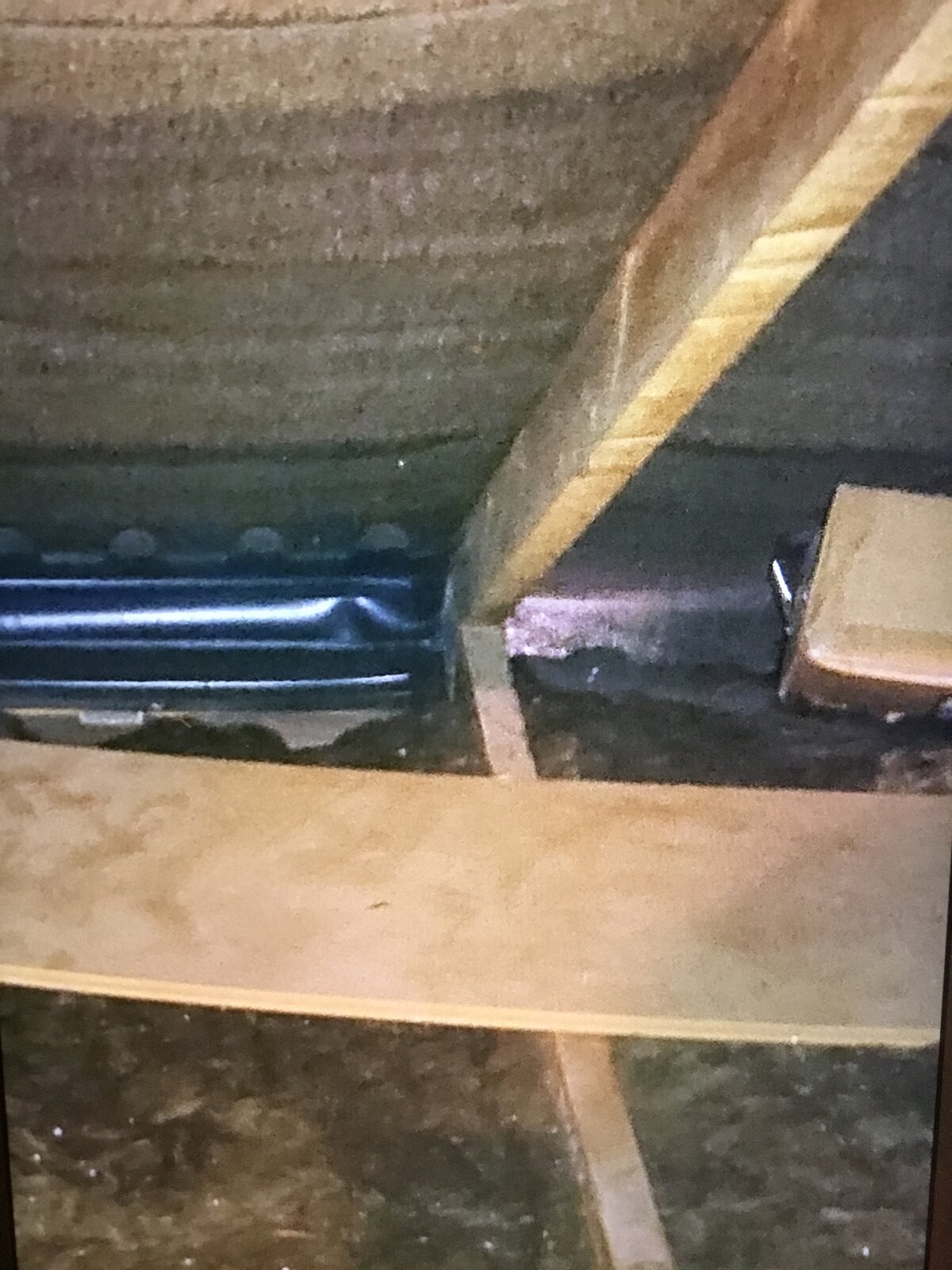 My other question is about some guttering type between the felt and the loft board. If you look at the end you see this strip of black plastic material. Can anyone tell me what that is? To the right is an overflow pipe. However that piece of black plastic material has been removed/blown away from the winds. Does it need to be fixed back? As in the third pic you can see daylight where that black plastic strip would be.