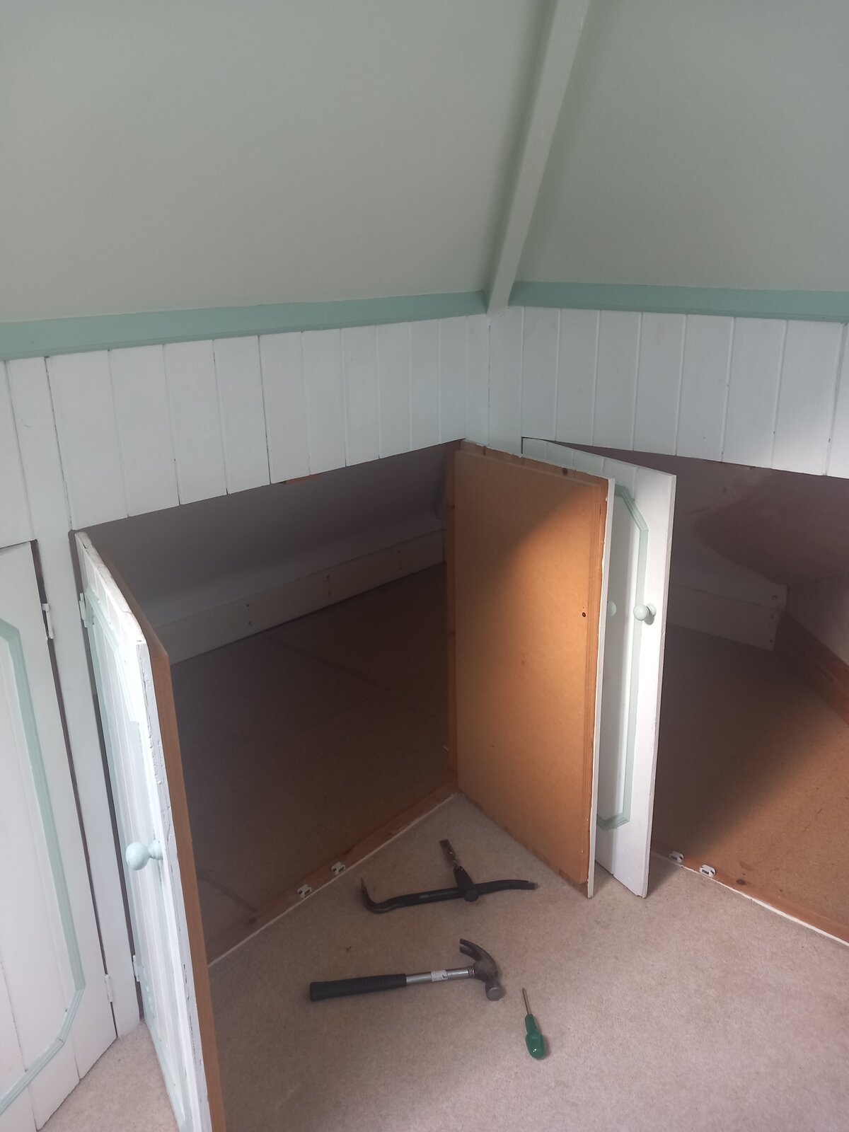 I have a 1930's house, which has an attic room (it's barely useable given the ceiling height!), which has a load of low level cupboards built in to the eaves.