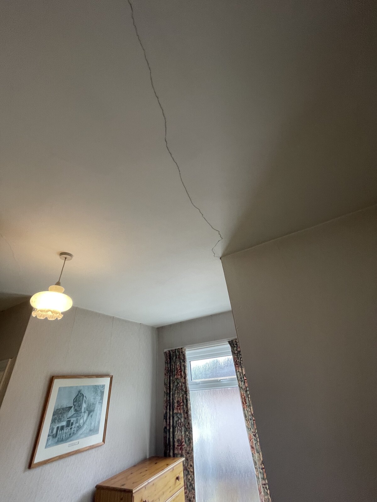 I am not sure. It’s semi detached house. Cracking everywhere on the ceiling upstairs and downstairs but no cracks on exterior wall.