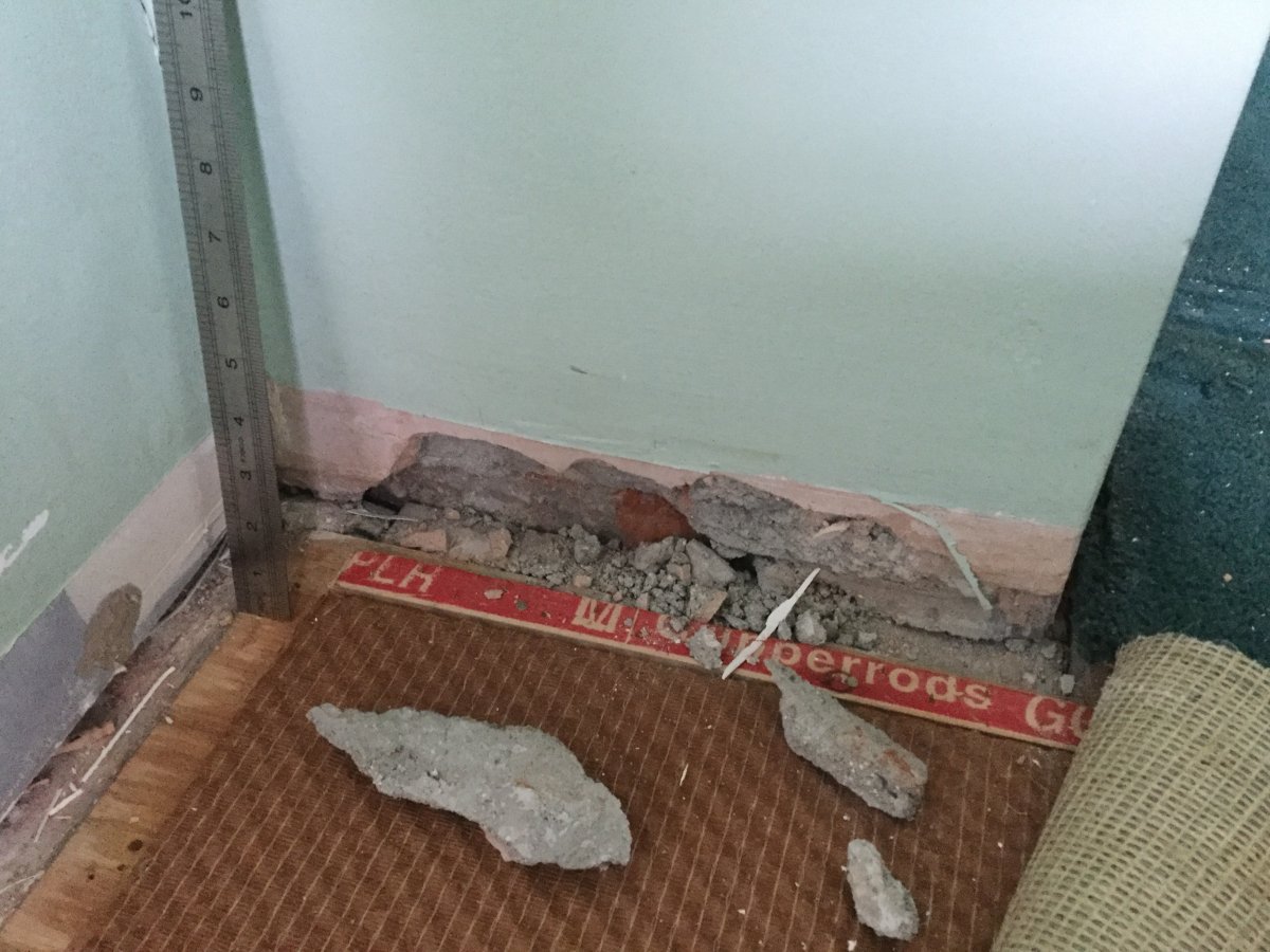 I've just removed skirting board in a bedroom and some fair sized holes have resulted (grab adhesive is obviously pretty powerful). The first one is at the foot of a solid wall and seems a bit more serious and the second one is in the plasterboard. I did think about just putting the new skirting board over the top but I think I should really patch it up first. Any advice on what to use to fill in these holes ?