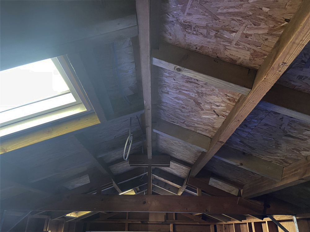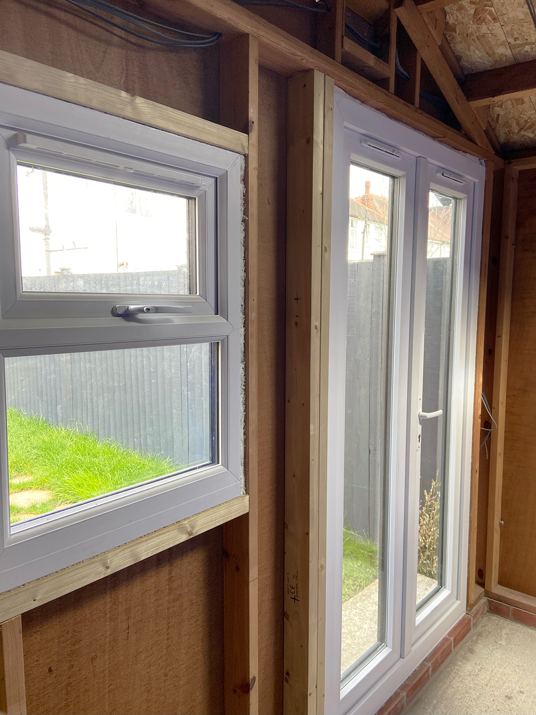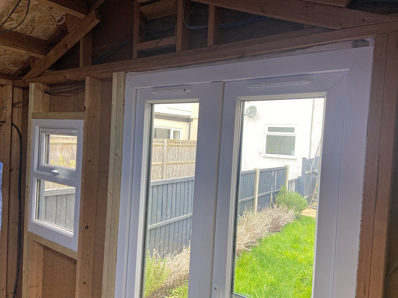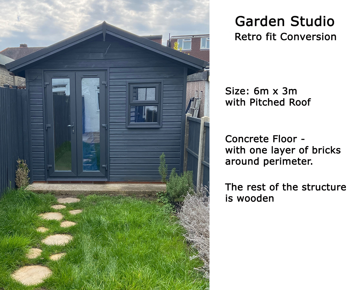 The structure is mainly timber 6m x 3m with a pitched apex roof that is constructed with 18mm OSB boards and covered with 1.5mm EDPM.