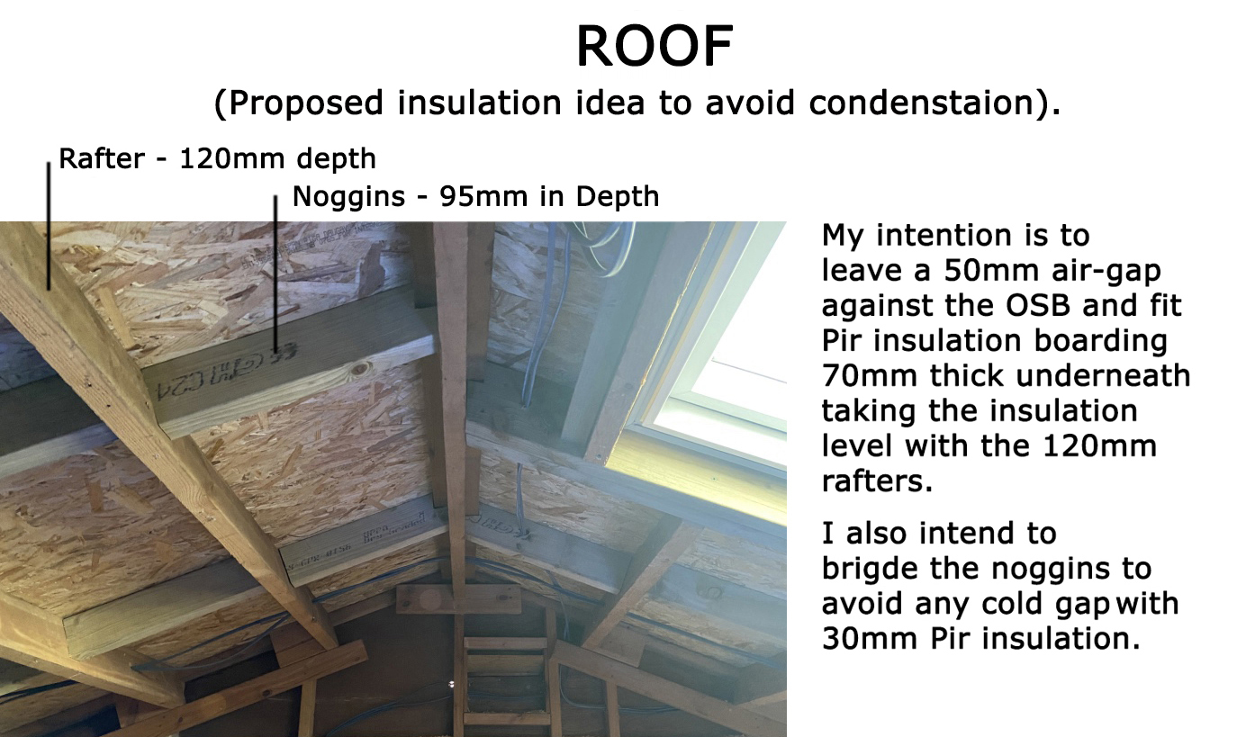 I believe insulating such a structure is what’s referred to as a ‘Cold Roof’ as the insulation will be going on the inside and my understanding is that I need to leave an air gap in the roof of approx 50mm, which needs to be vented to allow a through flow of air in order to avoid condensation.