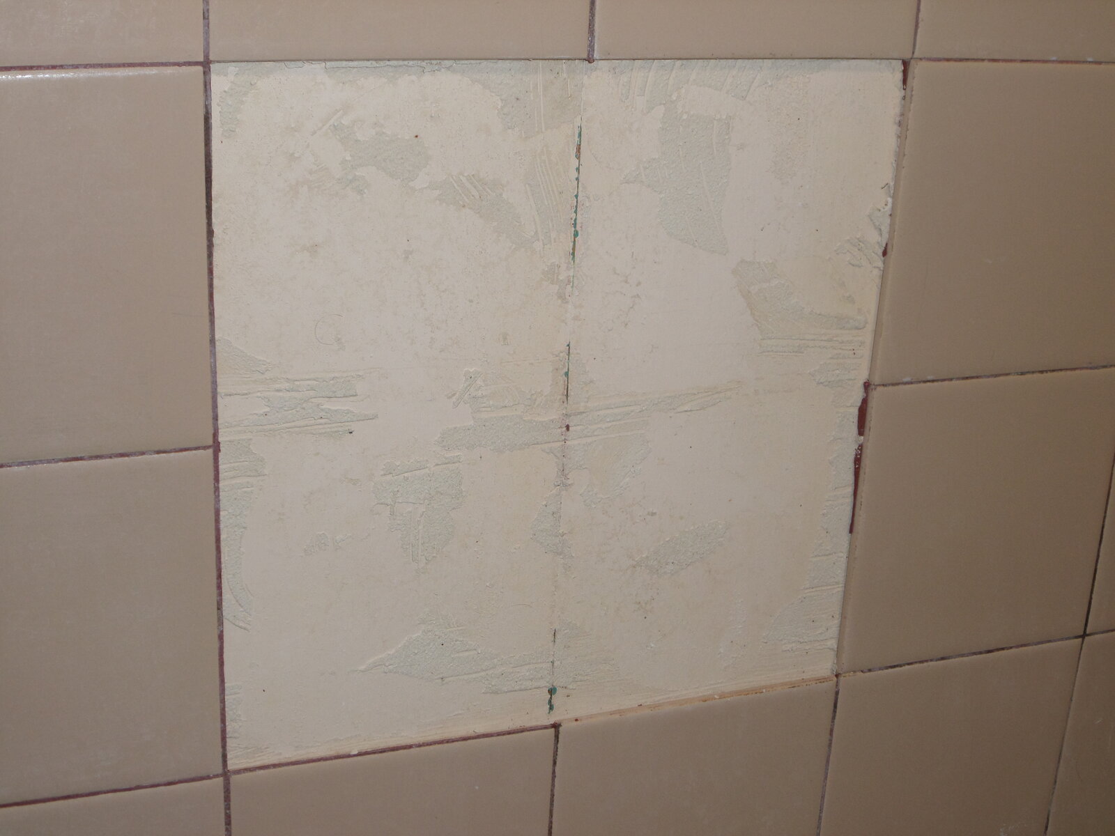 I had noticed that some of the grouting on my bathroom tiles was starting to fall away but thought nothing of it. A few weeks later a few tiles had come loose so I took them off, I also noticed that a couple of tiles next to them sounded hollow when I tapped them so pulled them off as well.