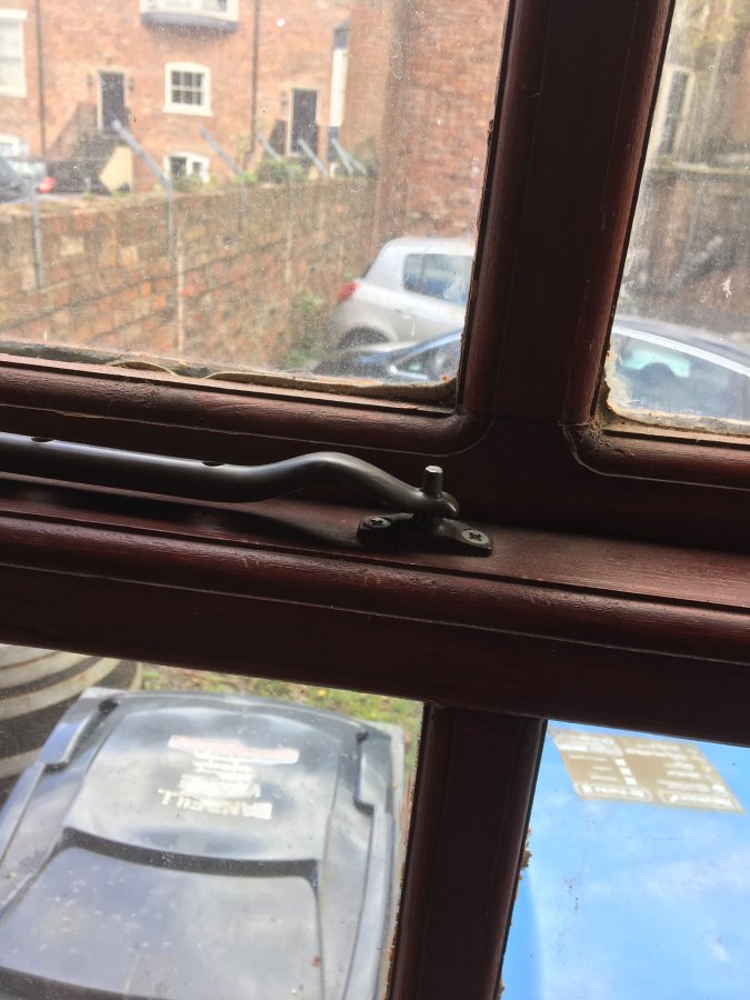 One way of testing the above theory is simply to engage the window catch, then try to push top and bottom of the sash to see if there is any movement in the sash, no matter how small. If there is a movement then that could be the source of the problem, resolution would be to fit two window catches as described above.