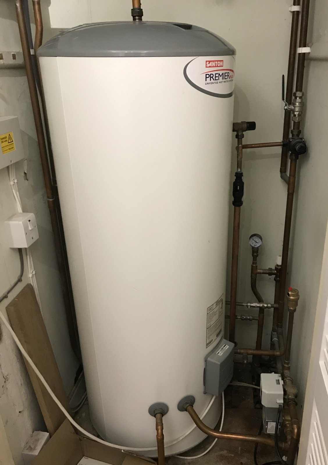 Check and top-up the pressure on your potable water expansion vessel (a large white vessel out of your shot). There will be a car tyre schraeder valve at one end, where you can attach a tyre pump.