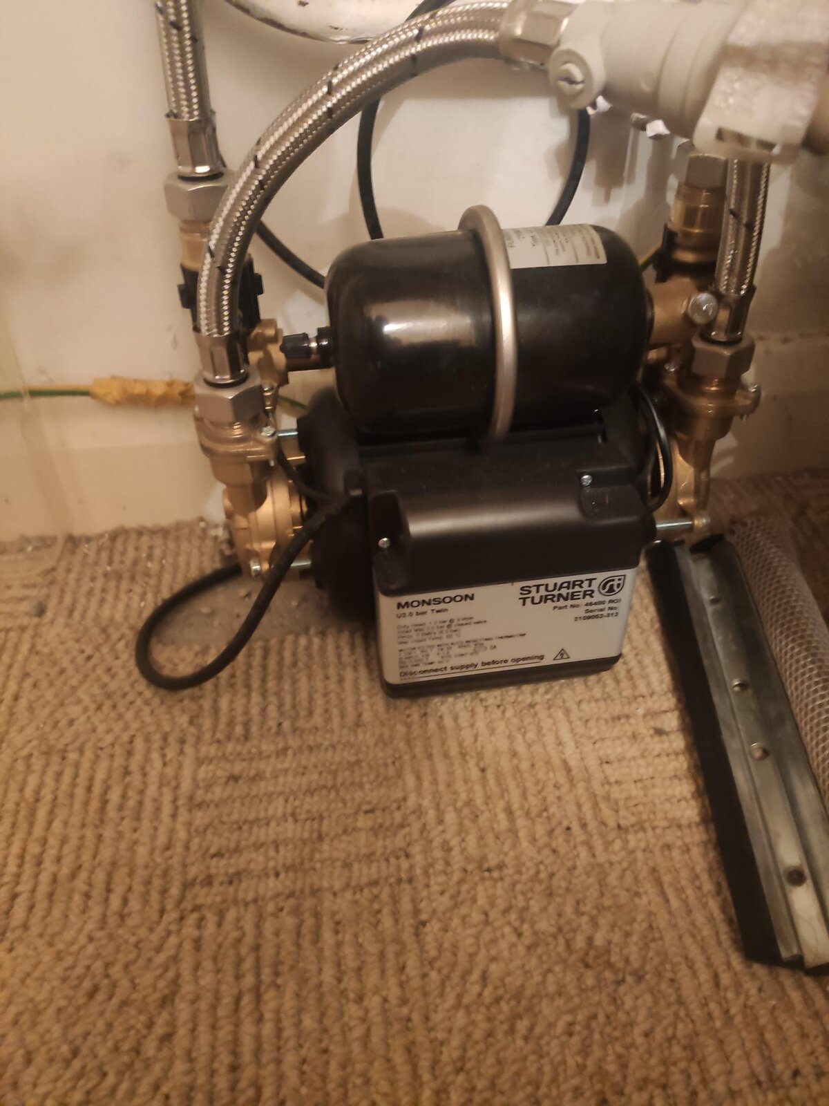 I’ve just moved into an apartment with a Stuart Turner Monsoon twin pump installed beside the hot-water cylinder. It boosts both the hot and cold water pressure throughout the flat.