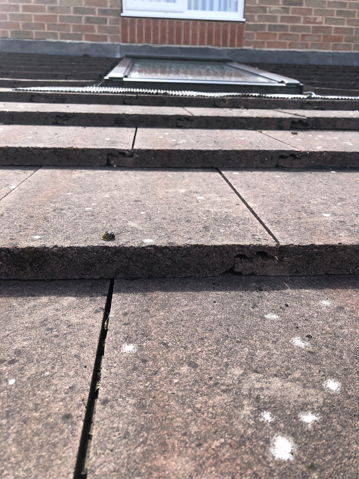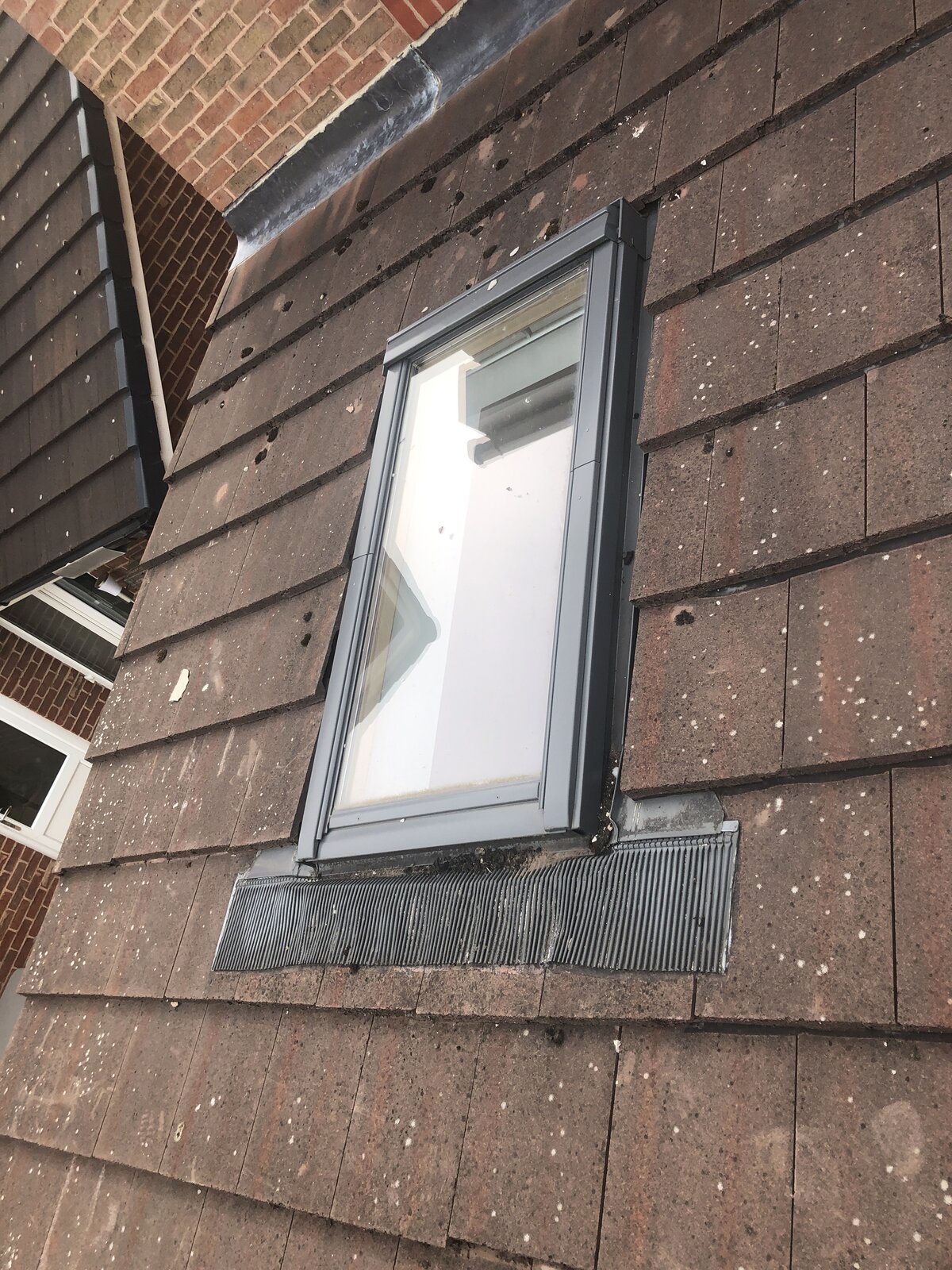 Just bought a house and we have a ground floor extension with approx 12 to 15 degree roof pitch, includes two velux windows in roof. Built 6 years ago, water stains on ceiling around velux windows. Water stains at lowest point of ceiling over french doors and windows. water dripping through plaster above patio doors. heavy water stain at side of room at one end of ceiling lowest point. Checked during heavy rain, the felt can be seen where it overlaps into the gutter and is fully soaked even up under the tiles. A wooden battern appears to clamp the felt into place along the full width of the extension (sat on top of felt) and is soaked. Not sure from where water gets in, not sure if it is the velux windows or the tiles used.