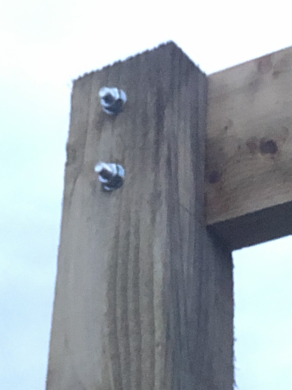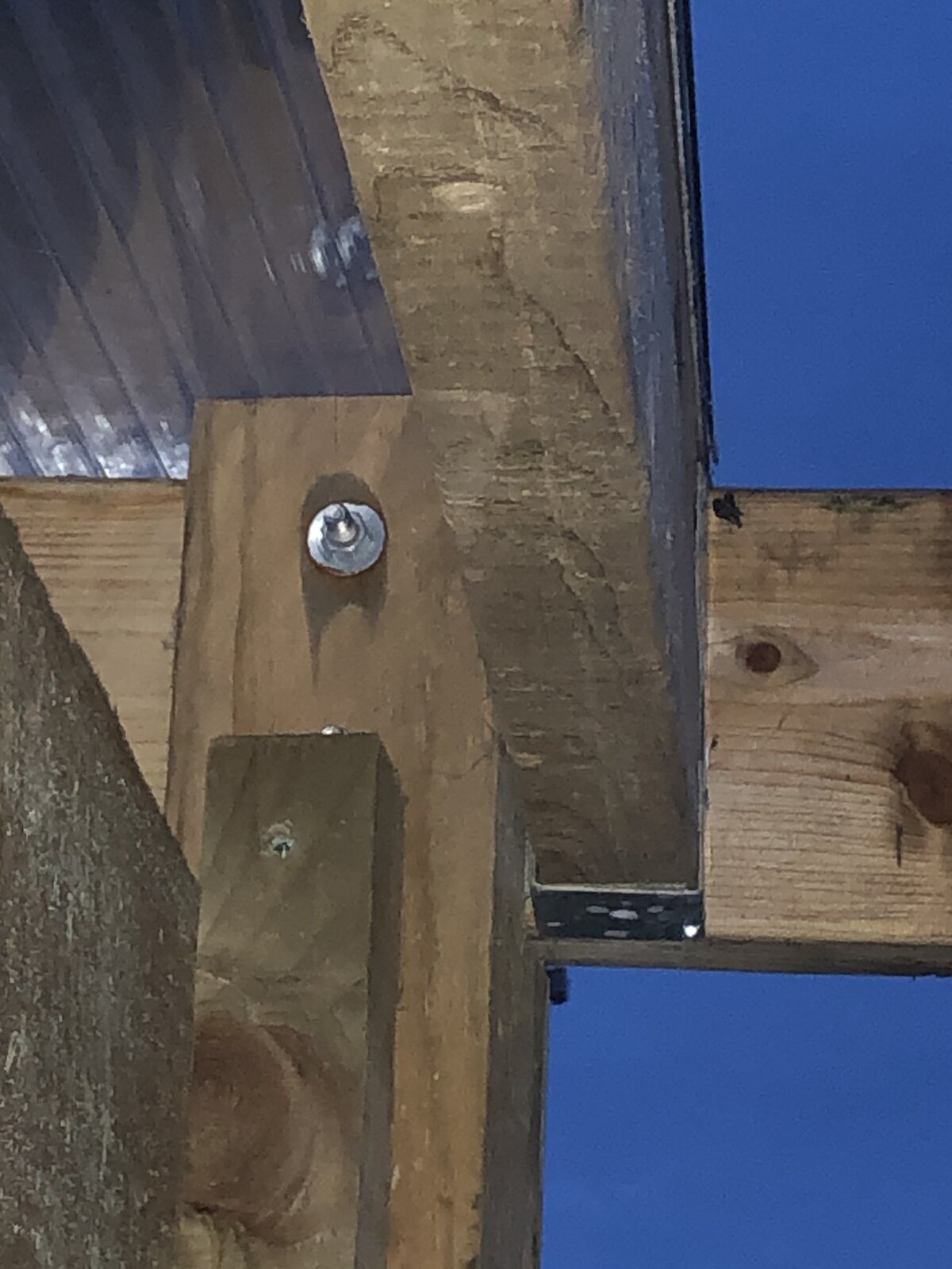 The second canopy I forgot about needing that overshoot. It goes flush to the post. So I don’t have the overshoot to put the joist hanger on. Where the joist hanger would now go would be on the post but there’s bolts there. I didn’t want to put a beam on the inside of the post but I could I guess just doesn’t look right.