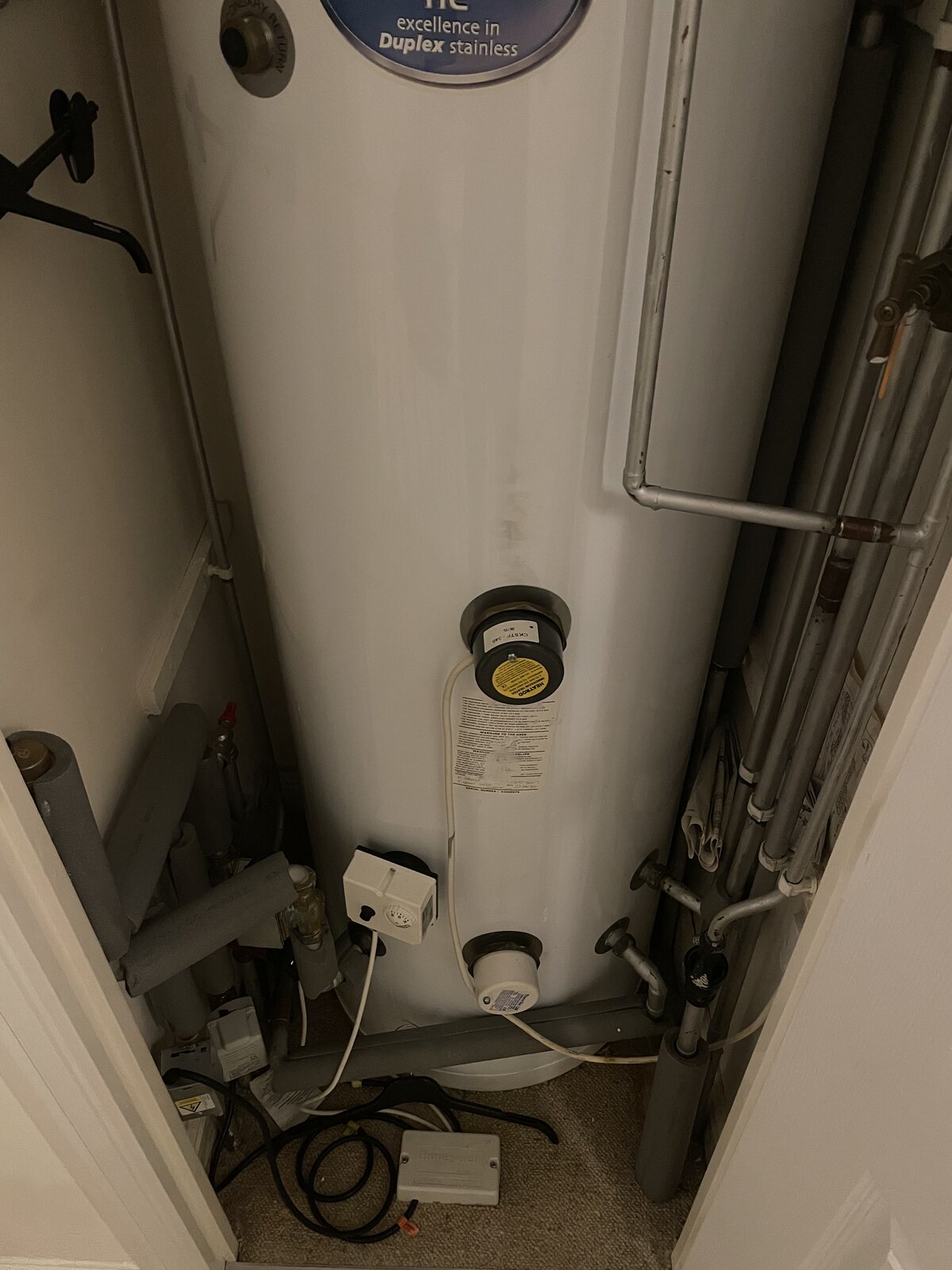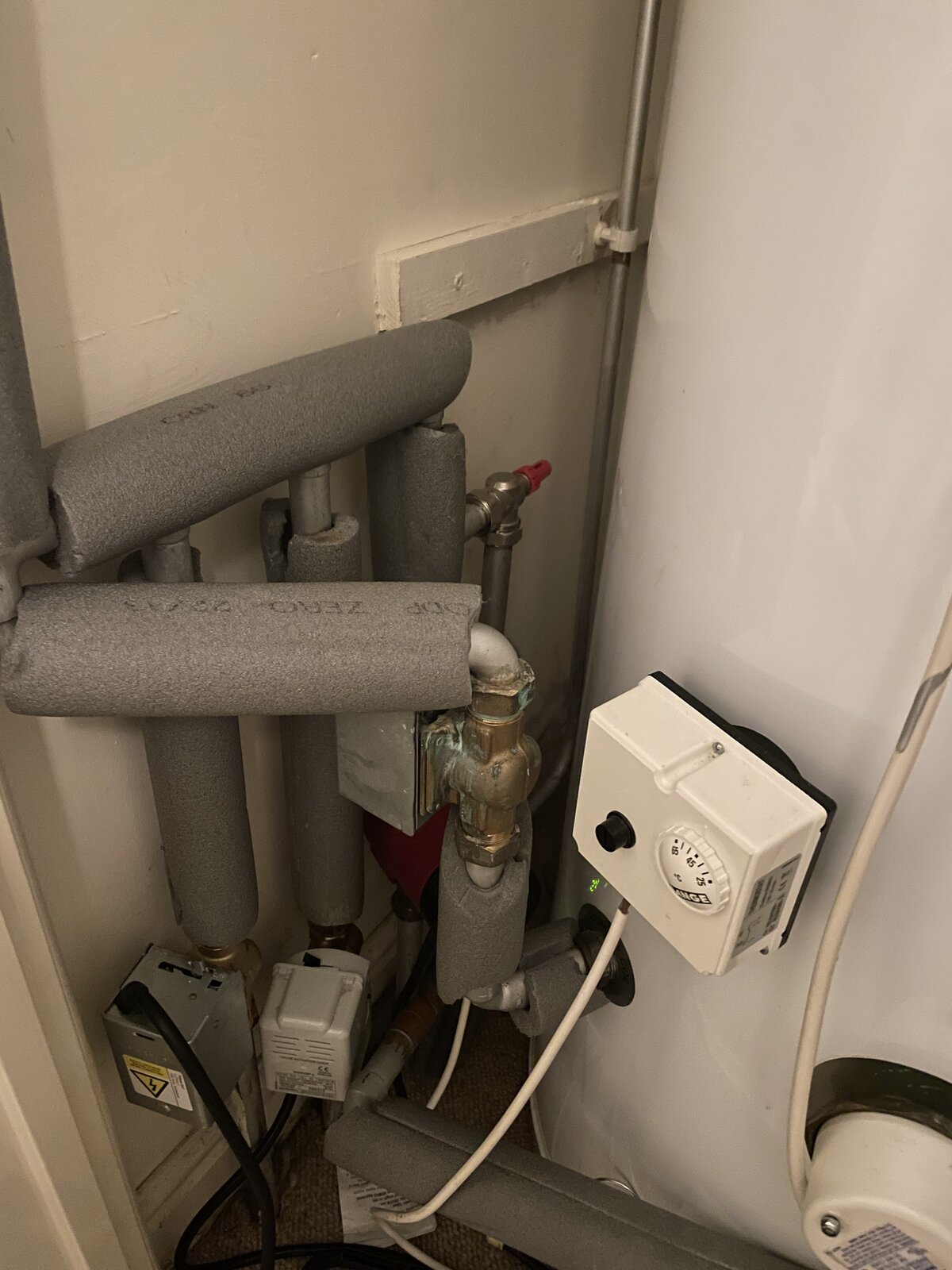 In the airing cupboard with the rest of the pipe work it doesn’t seem much better, not even sure the return pipe runs through here…