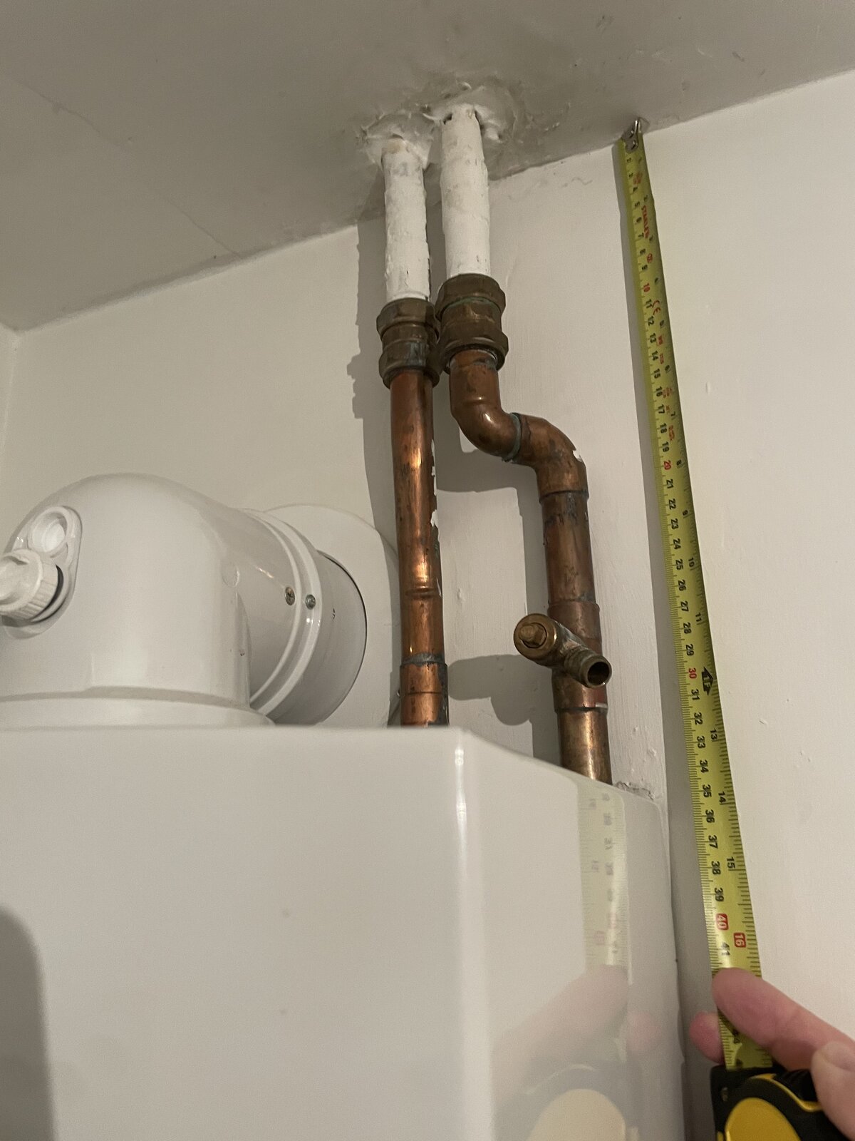 Above the boiler I’ve got not a lot of space on the return pipe to the roof (I believe the pipe on the right), it’s about 34cm but the pipe has a few bends as well rather than being straight.