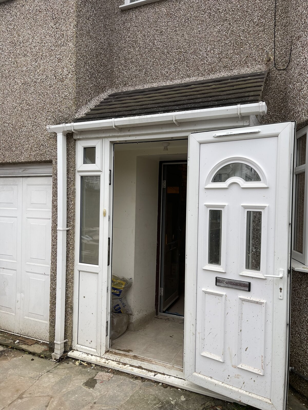 The wall above the original door is a load bearing wall holding the external wall of the box room