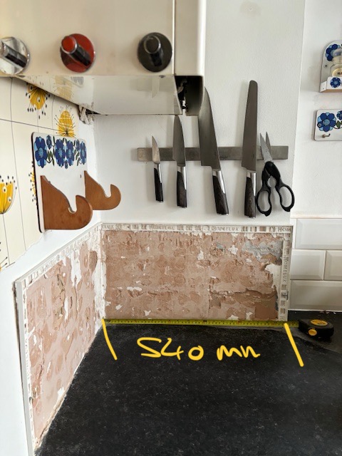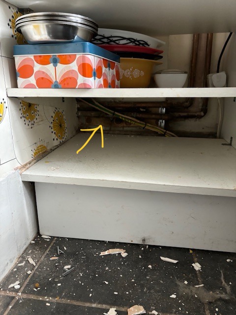 I guess that the OP could cut out a section above the tiles to work out where the pipes are but that would require him to fill and make good. It strikes me as being a lot of work, especially if there isn't sufficient space. Alternatively, if the OP takes off the plinth, they may be able to see where the pipes running up are.