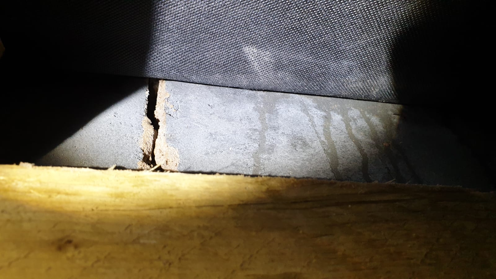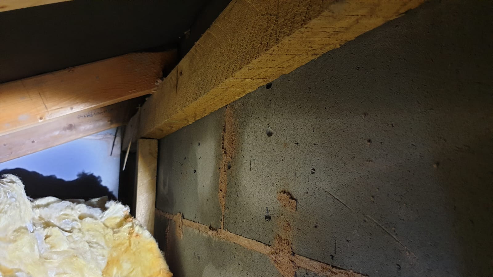Photos are attached to the end of this thread but as you can see water is pouring down the inside of the brickwork, and even inside the bricks. I believe the grey blockwork matches up to the house bricks outside as you can just see the bottom of a house brick if you lift the black membrane when I reach up into the hole in the kitchen ceiling.