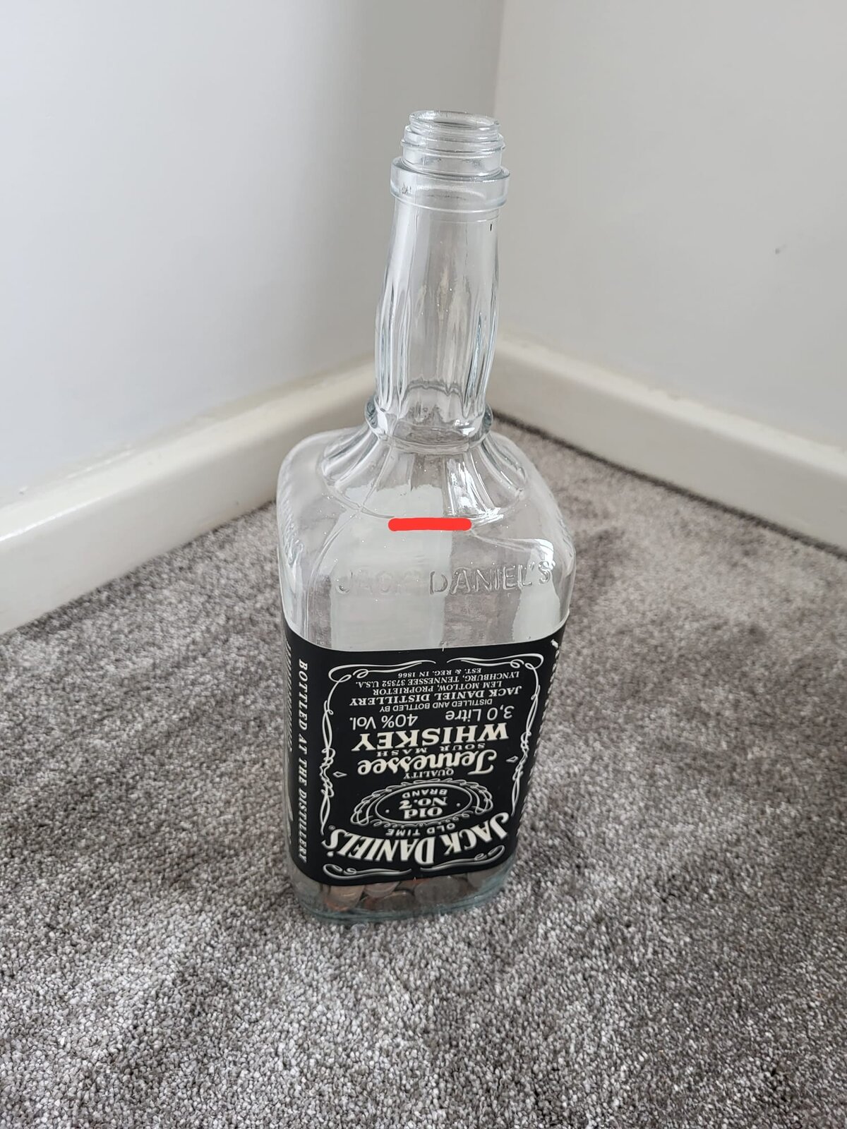 I have a large, empty Jack Daniels bottle that im using to collect change - but the bottle neck isnt wide enough to put 2p or 50p coins in.