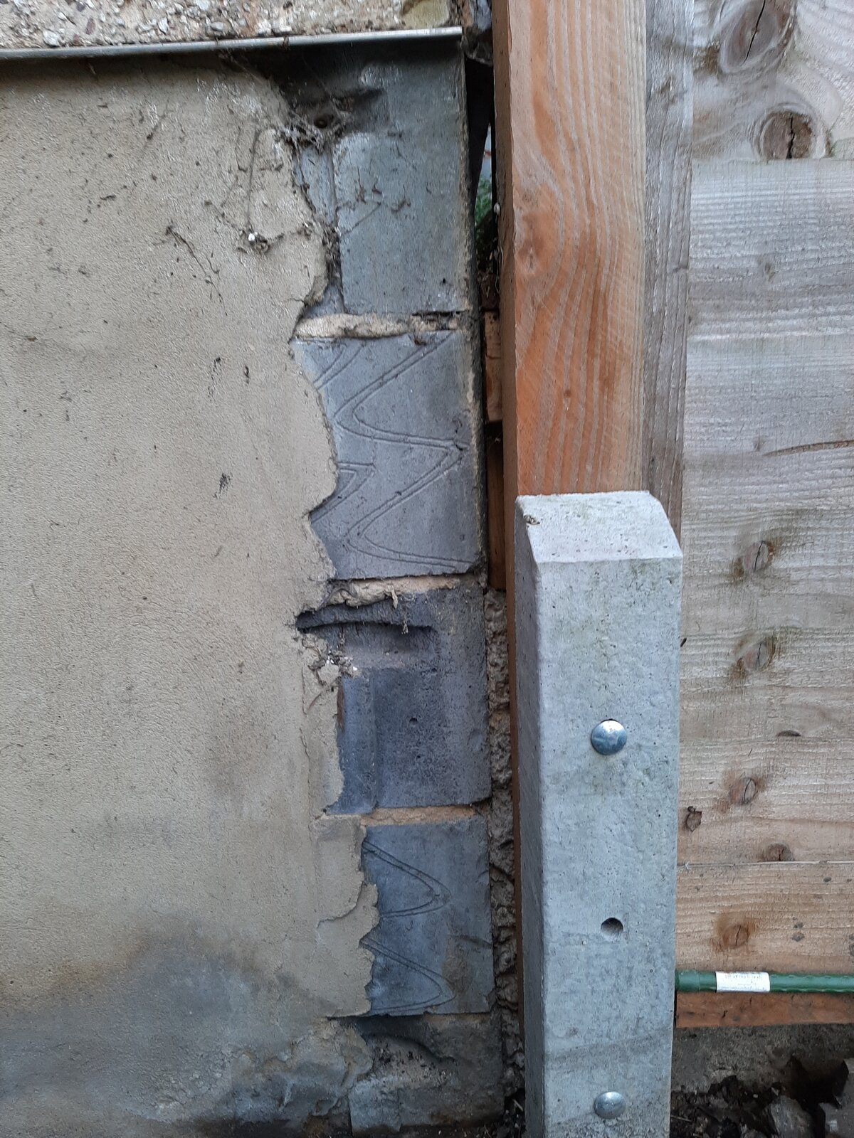 A few years ago my neighbour had an extension built at the side of my property. When the builder came to finishing off he couldn't access the far corner because I had an old shed there that was very large and well fixed into the ground. We agreed that, as I was going to replace it soon, he would come back when it was demolished. I got rid of the shed but my neighbour didn't bother to contact the builder so eventually I put a storage unit there to cover the corner and forgot about it. Now I'm about to put a more permanent structure there and would like to finish off that corner (new owners of the extension who didn't know all this are asking if this could be done before I erect my new shed). Is this a job for a professional or shall I just offer to fill and render it myself. Not too bothered about the pebble-dash etc. as it will be hidden. How should I proceed with the job?