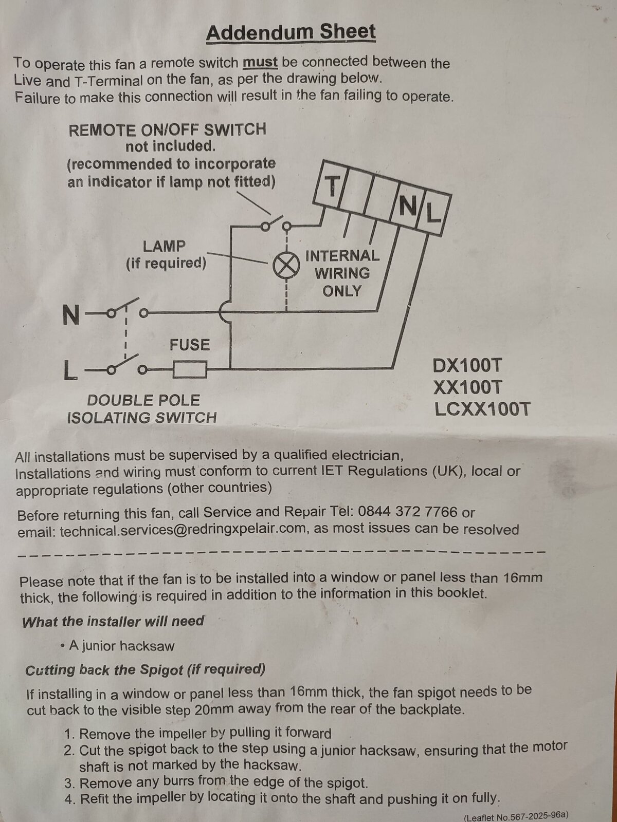 But an addendum was included in the box (photo of it attached) that calls for the use of a "Remote on/off switch". Do I need an extra switch somewhere or am I being an idiot and this is just part of the internal wiring in a 3 pole isolator switch? Thanks.