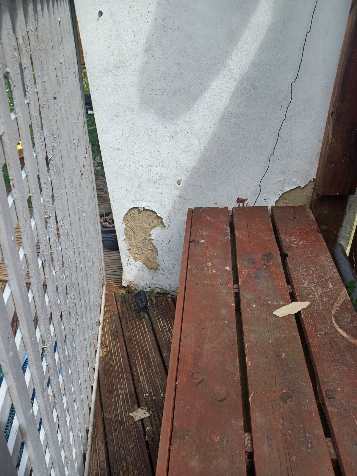 I'm in a period of unemployment and trying to stop myself going crazy by doing things around the house. I'm focusing on my decking and my garage. With my friend's pressure washer I am cleaning off the decking and the garage with a view to repainting both.