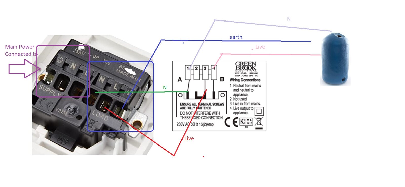 Thanks. I think I will not replace 'MK LOGIC PLUS 20A 1-GANG DP CONTROL SWITCH WHITE WITH NEON' with 'Greenbrook timer' as JohnD mentions it will lose DP isolation lose and will cause an issue to my immersion heater immediately.