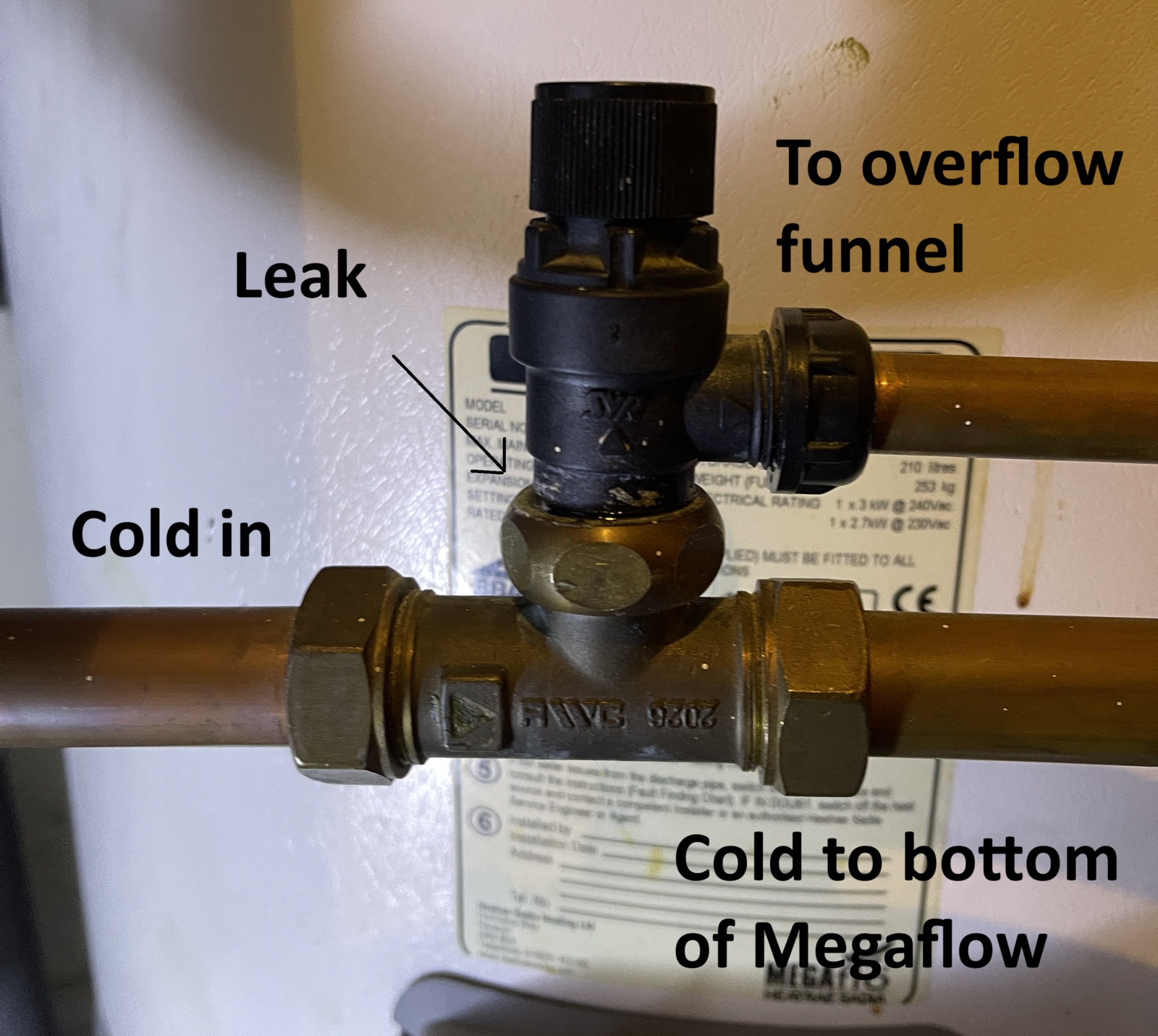 I have noticed a leak on my Megaflow cold water inlet pipework, after the isolator, before the cold inlet to the bottom of the cylinder. It is leaking between the nut and the base of the 8bar pressure relief valve. It is loosing about 1 drip a second so cant stay like this.