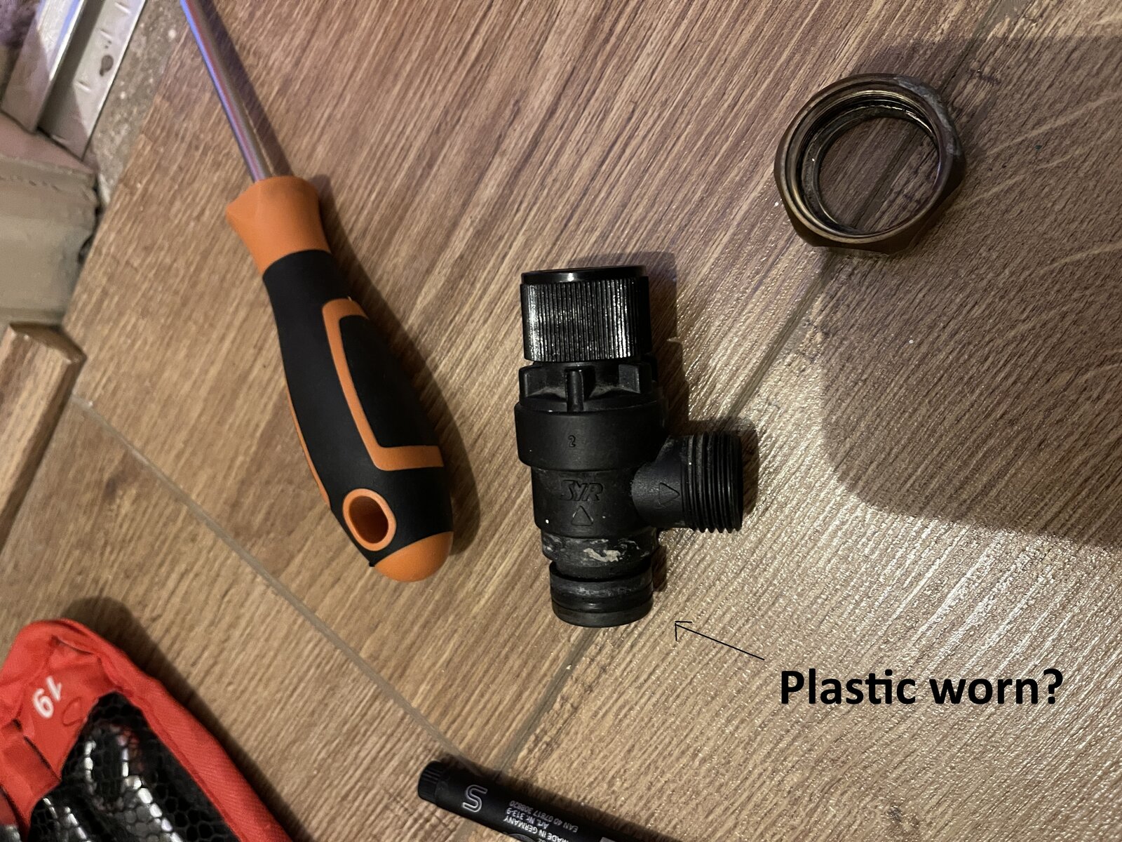 I isolated the input supply then removed the tee piece and tried to make the connection good to the pressure relief valve but to my surprise there is no evidence of any gasket fitted, it just seems the plastic base of the pressure valve sits inside the nut that screws onto the t-piece. Perhaps the plastic is worn? But it still does not seem like a good design if its designed to withstand 8 bar of pressure..